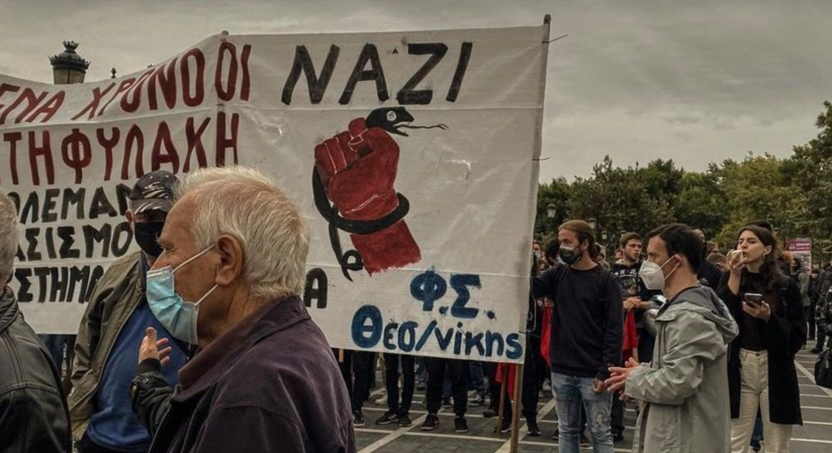 Έμαθε για το τί συμβαίνει στην πόλη τον τελευταίο μήνα, οι φίλοι του τον πήρανε τηλέφωνο και του είπανε πως σήμερα οι φοιτητές θα διαδηλώσουν κατά του φασισμού, εκείνος ”έτρεξε πίσω” στις στιγμές της ζωής του και απήντησε καταφατικά, ”θα πάμε να τα στηρίξουμε.” Έβαλε την μάσκα του, τα παπούτσια του και το μπουφάν του αγνόησε την μαυρίλα του καιρού, κλείδωσε το σπίτι του και περπάτησε προς το άγαλμα Βενιζέλου. Κοίταξε τα παιδιά με ένα ύφος ανακούφισης, είπε σε ένα ”δεν θα περάσει ο φασισμός.” Ακολούθησε την αντιφασιστική πορεία, σιωπηλά με αργό βήμα σα να αισθανόταν πως έκανε το σωστό. Γύρισε σπίτι μπορεί να μην βρήκε κανέναν, κοιμήθηκε όμως ήσυχος, γεμάτος.