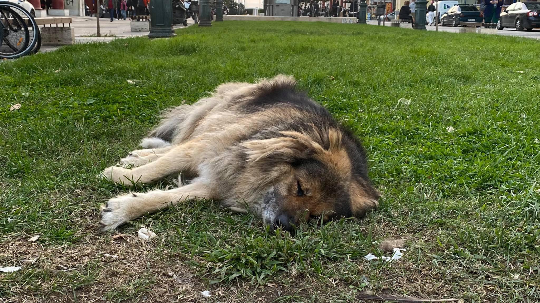 Αυτός είναι ο δικός μου διαδηλωτής, διανύουμε μαζί χιλιόμετρα όποτε βρίσκομαι στον δρόμο για κάλυψη πορείας, ζει στην Αριστοτέλους, πολλά χρόνια τώρα, πρέπει να έχει περάσει τα 5 έτη, το τρίχωμα του είναι φουντωτό και βρόμικο. Ψάχνει συνέχεια την αγέλη του και αν δεν την βρει είναι ανήσυχος. Ο διαδηλωτής, στέκεται δίπλα στους αστέγους, τους κάνει παρέα, του αρέσει η συντροφιά, επέλεξε τον άνθρωπο για φίλο ασχέτως που έχει φάει ξύλο από αυτόν, στις πορείες βαδίζει πάντα μπροστά από τα πανό, δίνει το σήμα έναρξης. Και όταν όλοι επιστρέψουμε στα σπίτια μας, και το κέντρο ερημώσει, ο διαδηλωτής, γυρίζει με κατεβασμένη την ουρά στα γρασίδια της Αριστοτέλους απέναντι από το ΑΤ κλείνει τα μάτια και κοιμάται με την σκέψη του ότι κάποιος μπορεί να τον βλάψει.