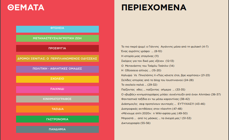 Ο μετανάστης Τσάρλι Τσάπλιν, η Οδύσσεια αλλιώς, το σχολείο και τα παιχνίδια στο τότε και το σήμερα, ταξίδια με το… μυαλό εν μέσω καραντίνας, μουσικές προτάσεις, αλλά και απολαυστικές συνταγές που πρέπει να δοκιμάσεις.