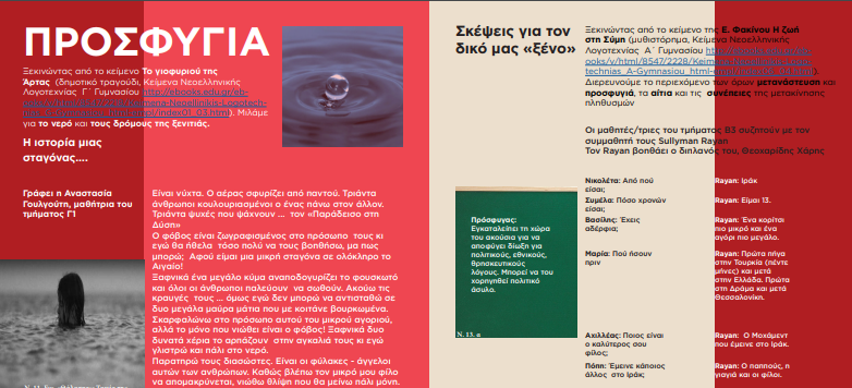 Κόντρα στις δύσκολες συνθήκες της εποχής οι μαθητές του Διαπολιτισμικού Γυμνασίου Ευόσμου στέλνουν μηνύματα ανθρωπιάς και δημιουργικότητας μέσω του λογοτεχνικού τους περιοδικού.