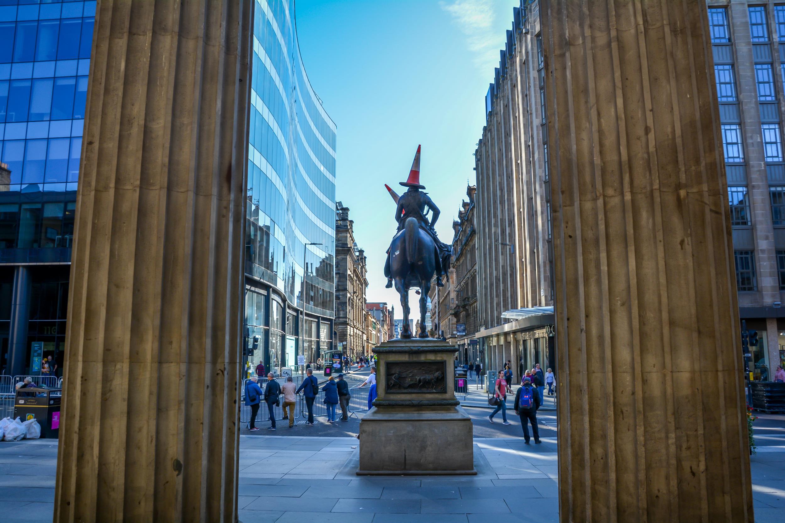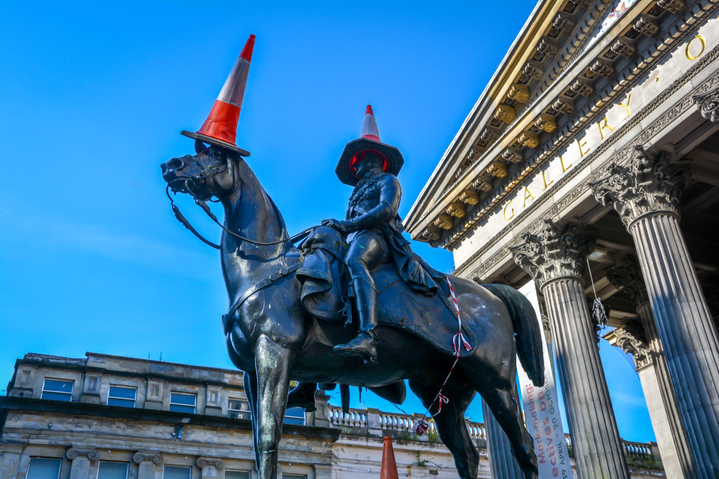 Αυτό το μνημείο βρίσκεται έξω από τη Γκαλερί Μοντέρνας Τέχνης στο κέντρο της Γλασκόβης. Η ιστορία του ξεκινά το 1884 όταν έγινε η ανέγερσή του και το κατασκεύασε ο Ιταλός καλλιτέχνης Carlo Marochetti. Στα μέσα της δεκαετίας του 80 και μετά από τις καθιερωμένες οινοποσίες και μεθύσια του Σαββατοκύριακου, κάποιοι τοποθέτησαν έναν πορτοκαλί κώνο τροχαίας στο κεφάλι του Δούκα.