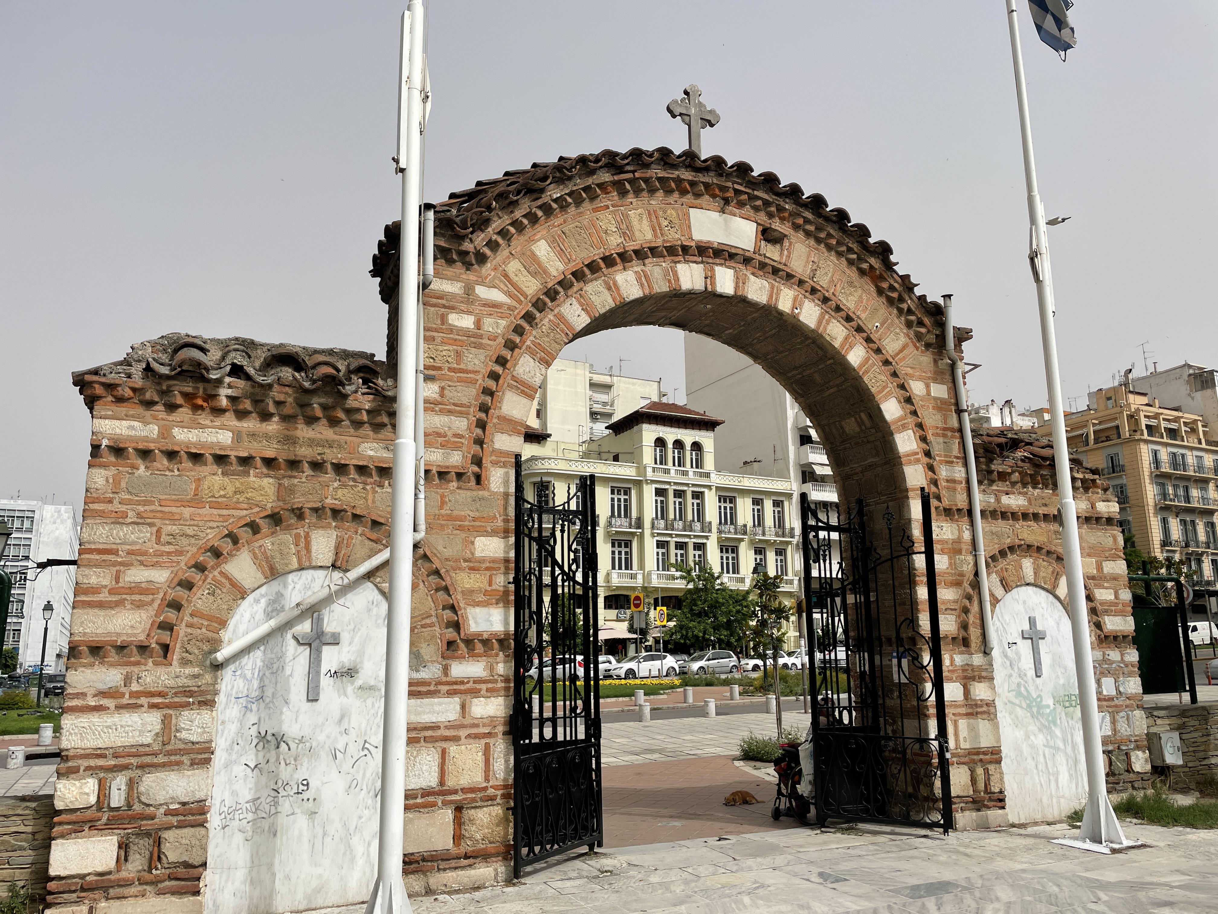 Ένα δεύτερο μέτωπο έκαψε τον Άη Δημήτρη και κατέβηκε μέχρι την Παραλία, παρακάμπτοντας όμως την Αγία Σοφία και προχωρώντας νοτιοανατολικά έφτασε μέχρι την Ιπποδρομίου. Αυτό όμως που θα την συνδέει πάντοτε με την ημέρα της μεγάλης πυρκαγιάς που άλλαξε για πάντα την Θεσσαλονίκη είναι το γεγονός πως στο χτίσιμο της εισόδου – του πρόπυλου του αύλειου χώρου του ναού τα κεραμίδια που χρησιμοποιήθηκαν είναι τα απομεινάρια από τα σπίτια που καταστράφηκαν.