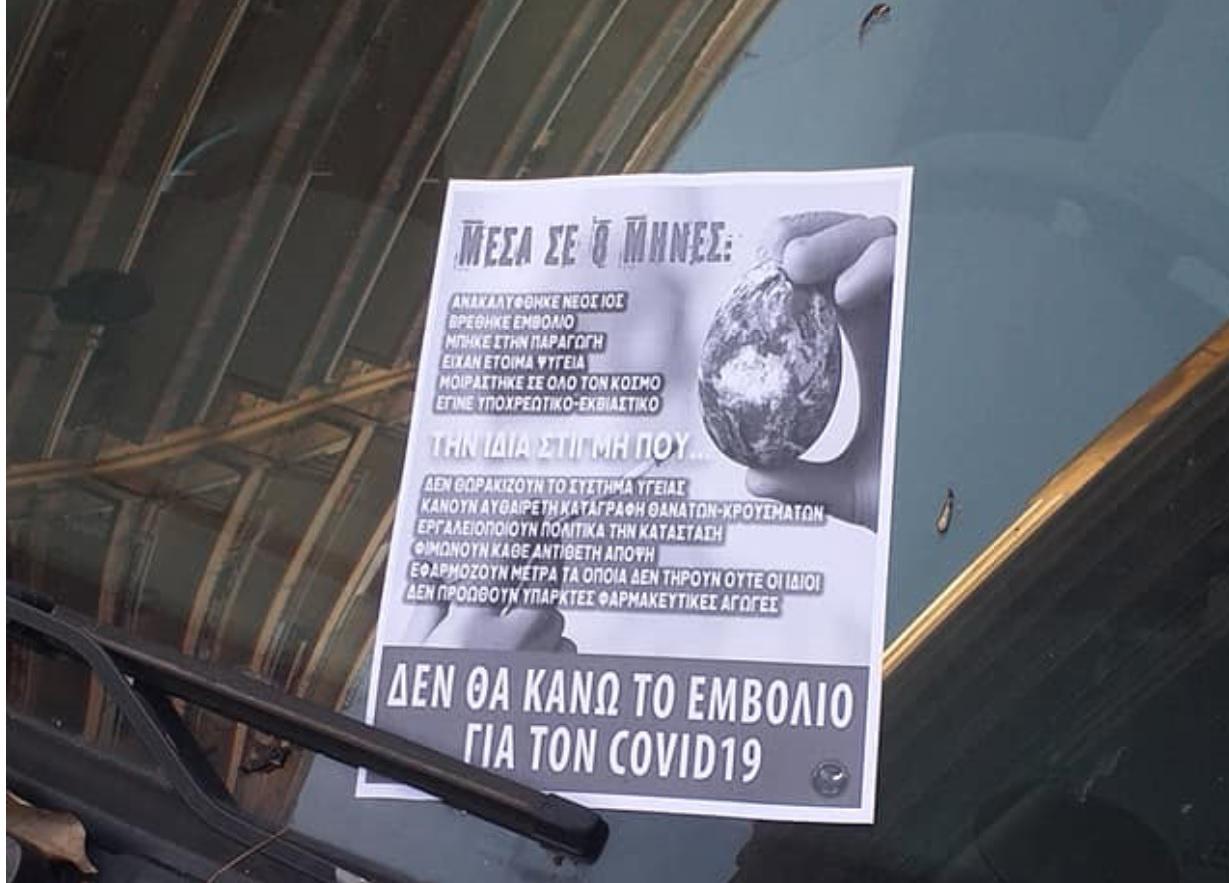 Και τα γεγονότα αυτά δεν είναι τα μόνα. Μέσα στις γιορτές η Θεσσαλονίκη γέμισε αφίσες αρνητών του εμβολίου και αμφισβητιών της πανδημίας. Νωρίτερα η ίδια «γεωγραφία ανθρώπων» συνωστίζονταν στον Λευκό Πύργο διαμαρτυρόμενοι για τις μάσκες και κρατούσαν πανό με υπόνοιες για τον Μπιλ Γκέιτζ και το 5G.