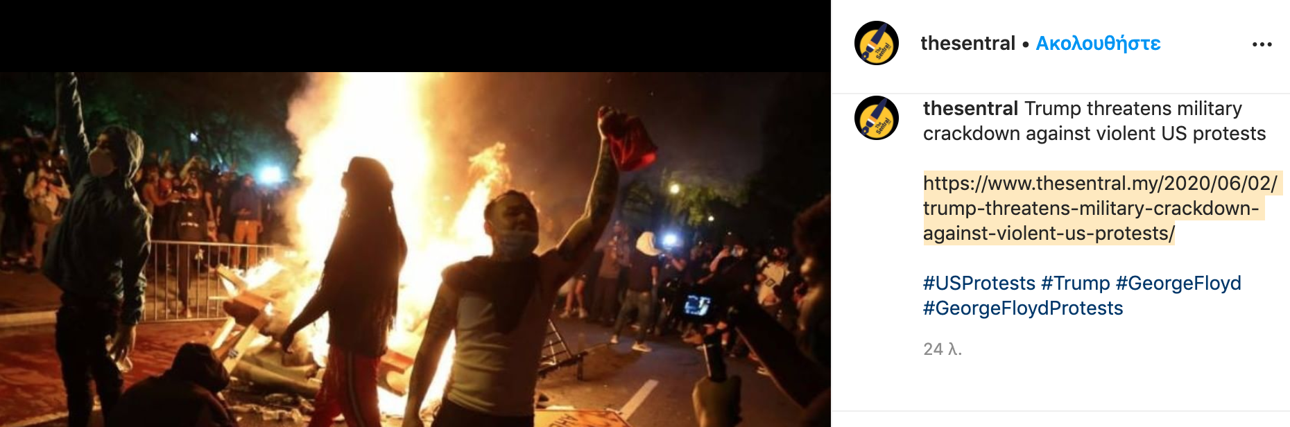 Ωστόσο, δεκάδες αμερικανικές πόλεις επιβάλλουν νυχτερινή απαγόρευση κυκλοφορίας για άλλο λόγο: εξαιτίας των διαδηλώσεων και των ταραχών που εξαπλώθηκαν σε σχεδόν όλη τη χώρα μετά τον θάνατο του Τζορτζ Φλόιντ, 46χρονου Αφροαμερικανού, κατά τη διάρκεια της βίαιης προσαγωγής του από λευκούς αστυνομικούς την περασμένη εβδομάδα στη Μινεάπολη (Μινεσότα).