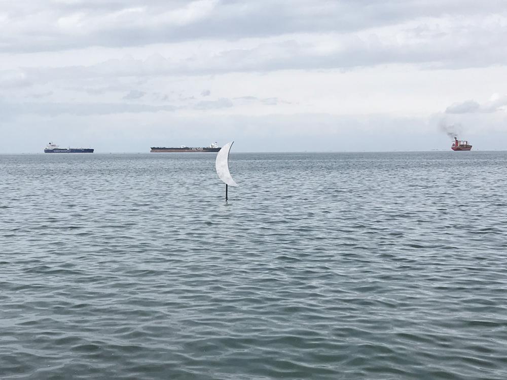 Είναι φτιαγμένο από μέταλλο (ανοξείδωτο ατσάλι) επιζωγραφισμένο με χρώμιο, ύψους τεσσάρων μέτρων και η τοποθέτησή του έγινε σε σταθερή βάση μέσα στο Θερμαϊκό από ομάδα έμπειρων βατραχανθρώπων.