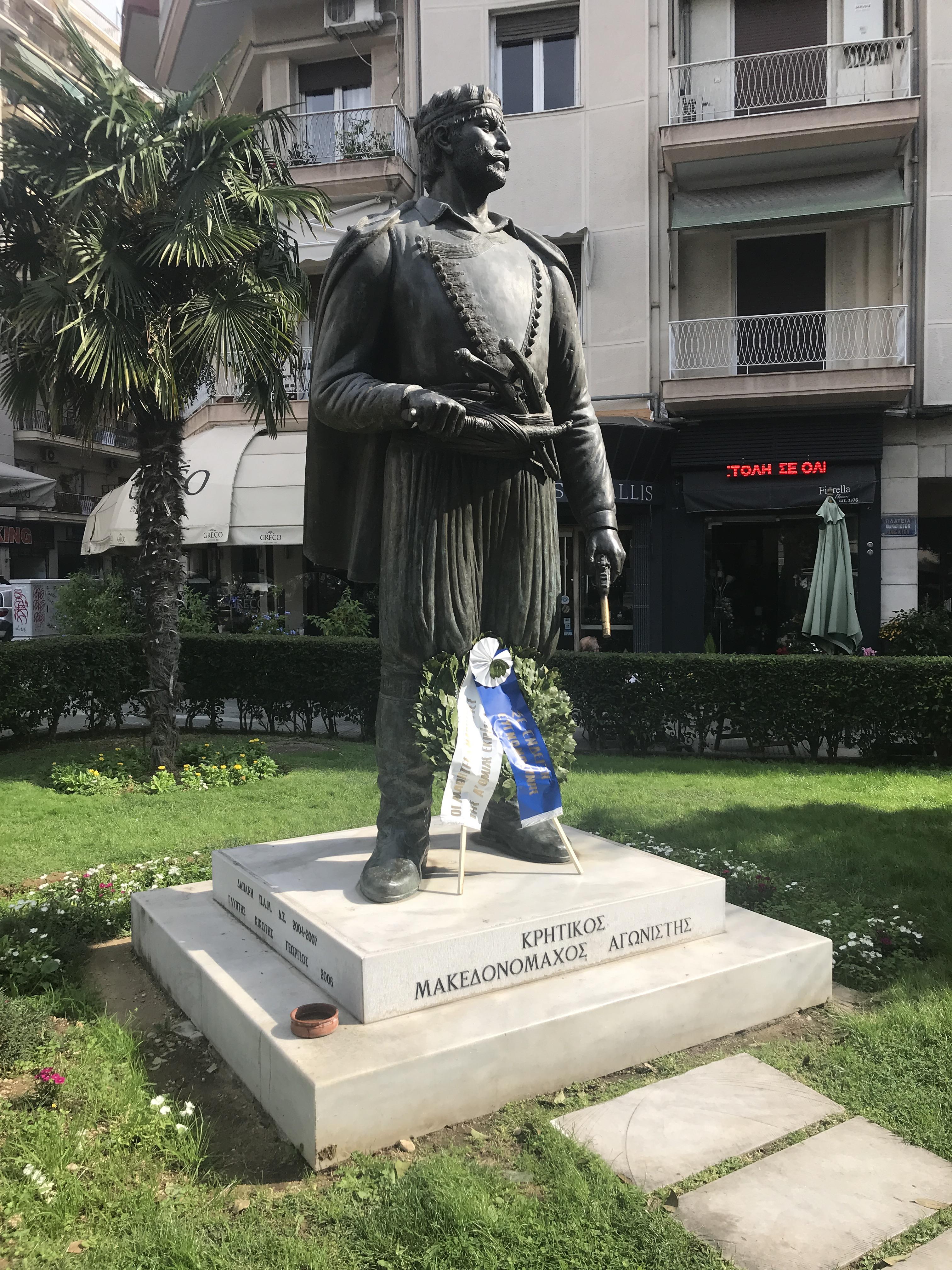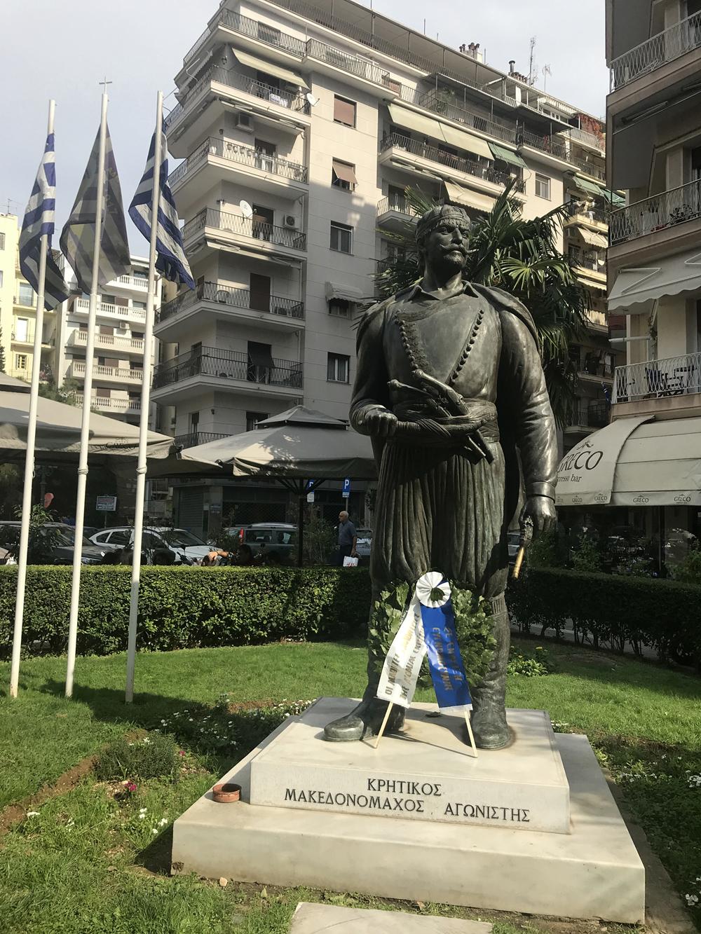 Η Θεσσαλονίκη τιμά του Κρητικούς αγωνιστές με αρκετές προτομές και αγάλματα με κύριο ένα μεγάλο άγαλμα του Κρητικού Μακεδονομάχου.