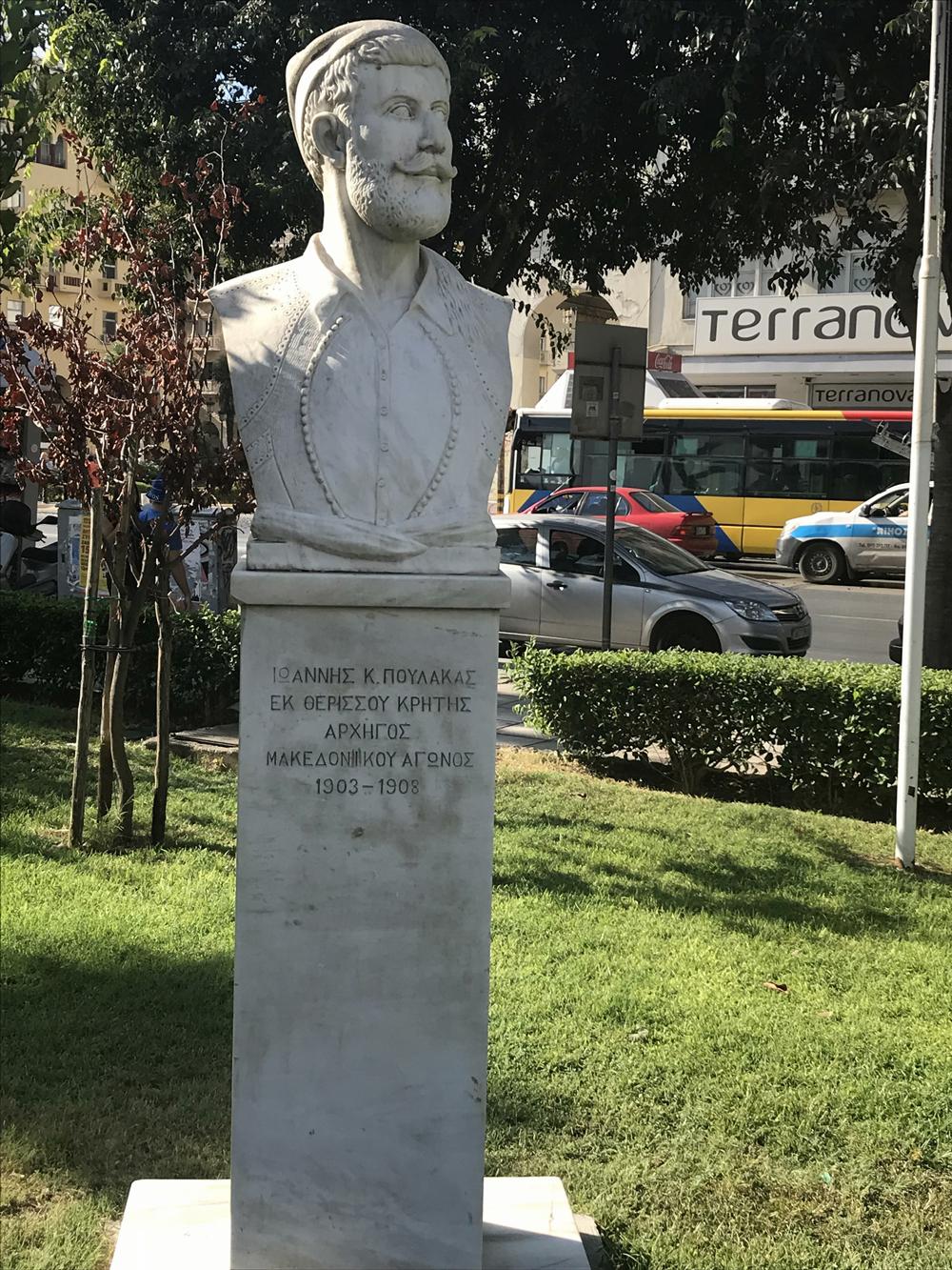 Η προτομή ενός άλλου πολεμιστή του Ιωάννη Πουλάκα, βρίσκουμε στην πλατεία Χαριλάου επί της Παπαναστασίου. Ο Ιωάννης Πούλακας καταγόταν από το Θέρισσο των Χανίων. Ήταν ένας από τους πιο δημοφιλείς αγωνιστές. Έφθασε στη Μακεδονία τον Οκτώβριο του 1904 για να ενισχύσει τον Παύλο Μελά. Δολοφονήθηκε σε μια χαρτοπαικτική λέσχη στις 25 Οκτωβρίου του 1908, γεγονός που αναστάτωσε την Αθήνα της εποχής εκείνης και τα πνεύματα ηρέμησαν μόνο με την επέμβαση του Ελ. Βενιζέλου.