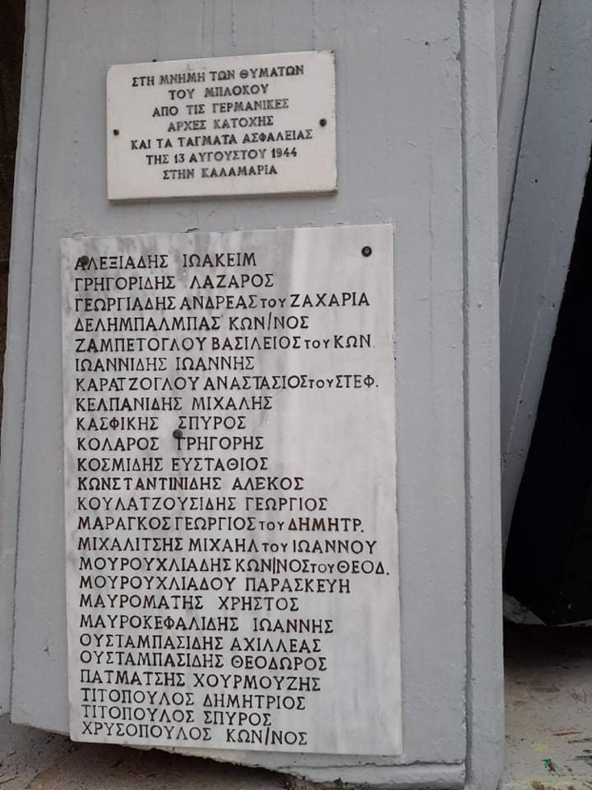 Την Κυριακή 13 Αυγούστου 1944 το πρωί ημέρα που θα μείνει στην μνήμη όλων και κυρίως των Καλαμαριωτών ως η ημέρα του μπλόκου, Γερμανοί μαζί με άντρες από το τάγμα του δωσίλογου φόβου και τρόμου της πόλης Δάγκουλα συλλαμβάνουν και εκτελούν 13 πολίτες ως μέλη οργανώσεων της αντίστασης.