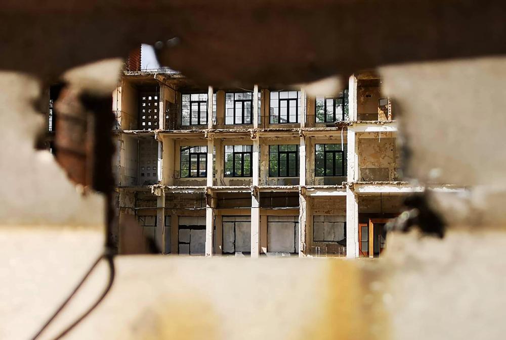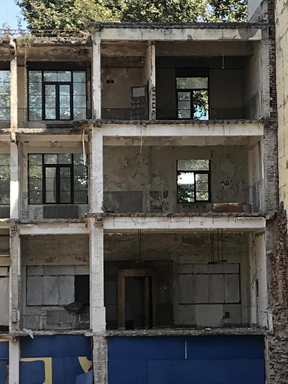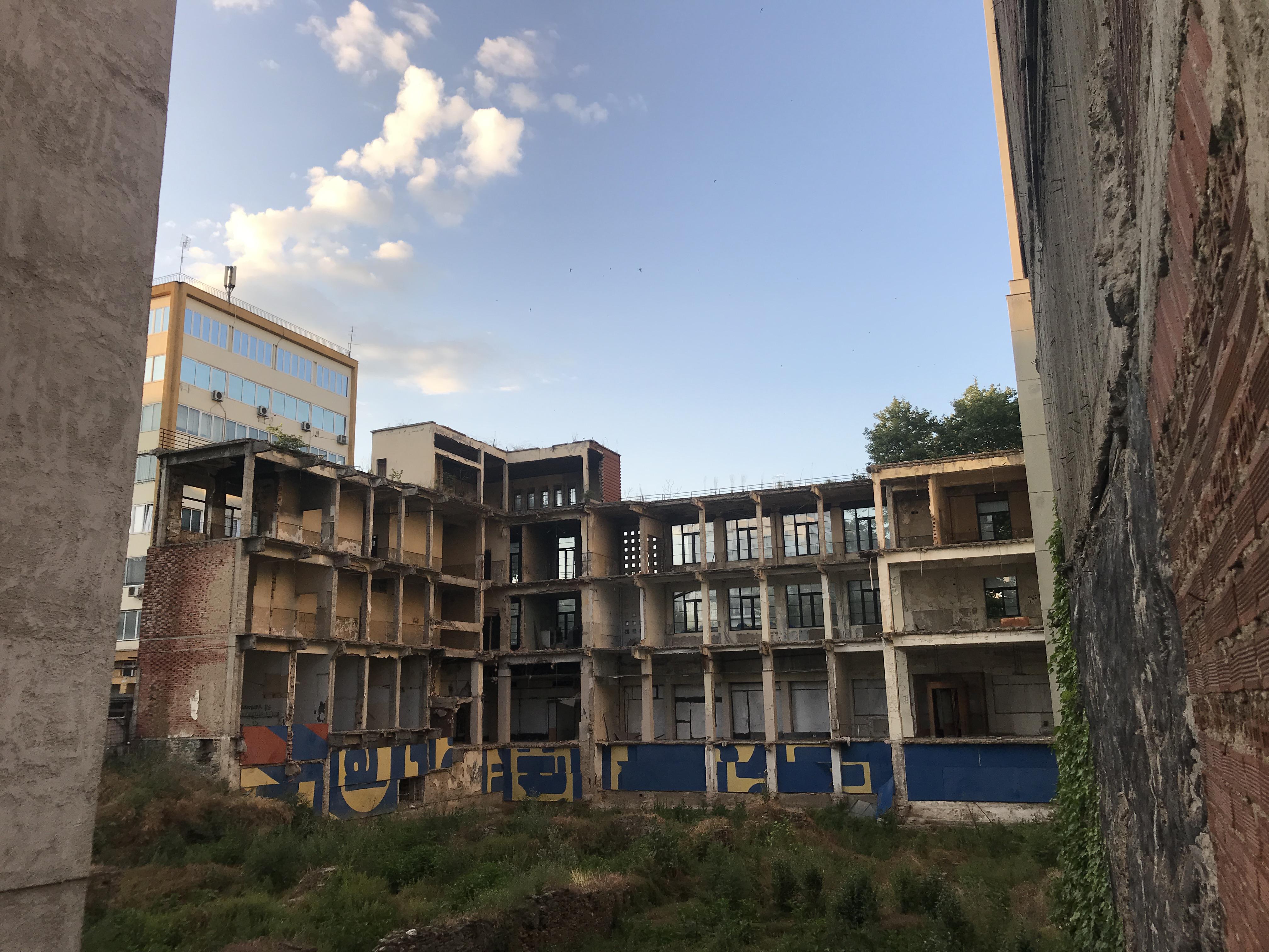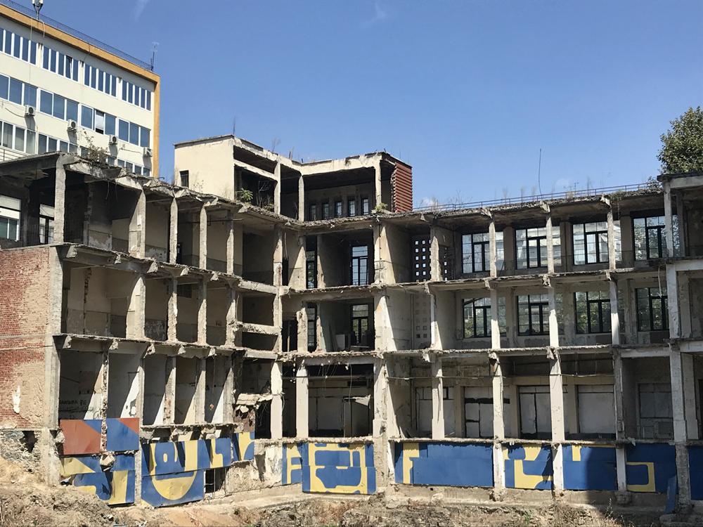 Το έργο καθυστερεί γιατί κατά την ανασκαφή για την θεμελίωση του νέου κτίσματος βρέθηκαν αρχαία και σταμάτησαν οι εργασίες κατασκευής με αποτέλεσμα να χάσκει ως μια μαύρη τρύπα, ένα μνημείο μιας άλλης εποχής από το οποίο δεν έμεινε τίποτα πια εκτός από τις πόρτες και τα παράθυρα που ταξιδεύουν την ματιά σου σε έναν άλλο κόσμο.