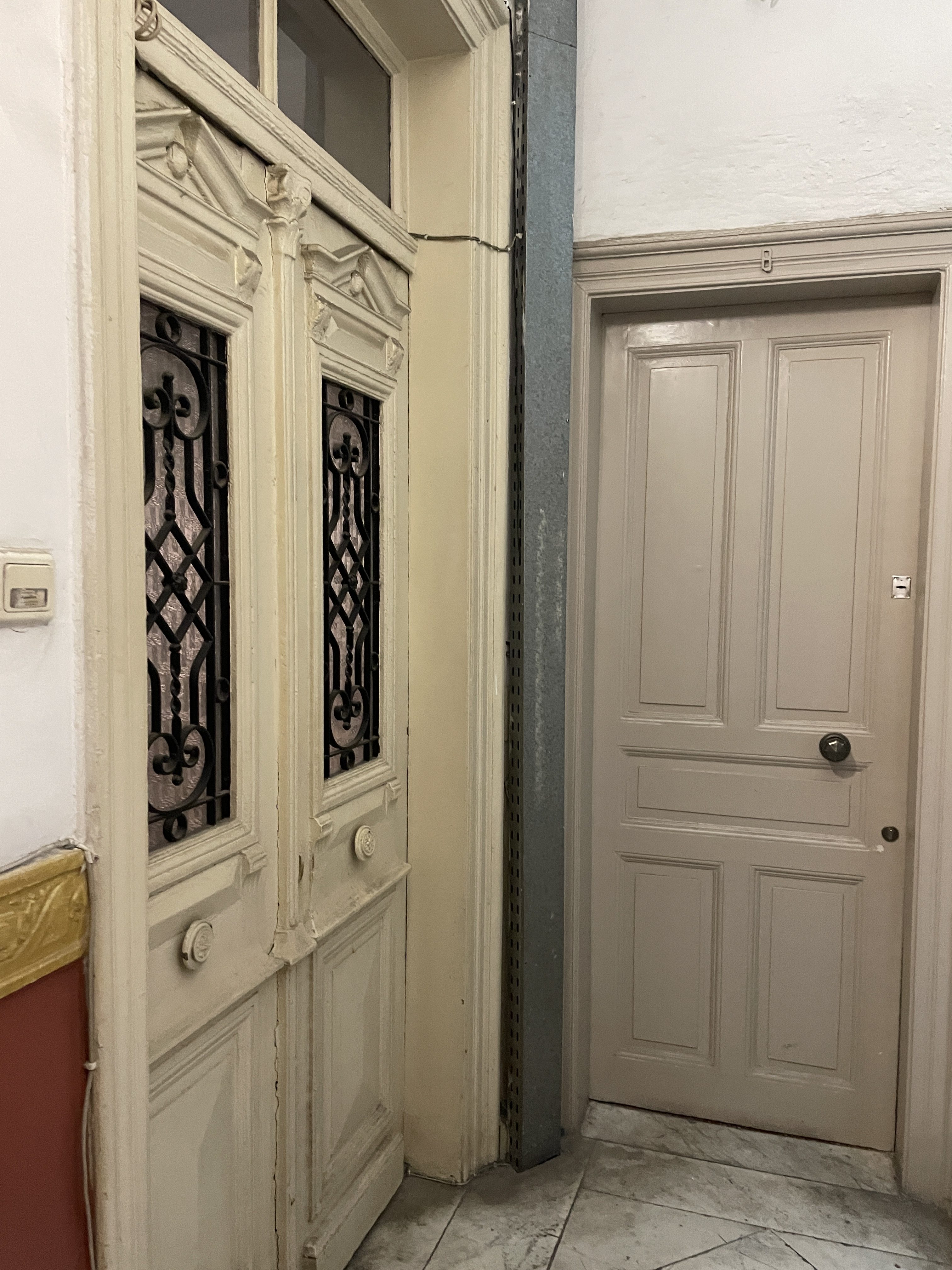 Αξιόλογα είναι τα επιμέρους στοιχεία, όπως η διαμόρφωση της εισόδου με τις γύψινες διακοσμήσεις, το κλιμακοστάσιο με επένδυση μαρμάρου και τις διακοσμήσεις που έχουν αποκαλυφθεί, τα κιγκλιδώματα των εξωστών, τα φυτικά κοσμήματα ως στέψη των ανοιγμάτων του ισογείου, τα αρχικά ξύλινα κουφώματα και παντζούρια, το μεταλλικό στέγαστρο πάνω από τα καταστήματα, τα διακοσμητικά ανάγλυφα μοτίβα στις όψεις. Στο ισόγειο του κτιρίου, στη στοά μπορεί κανείς να πιει τον καφέ η το ποτό του μιας και λειτουργεί καφέ μπαρ.