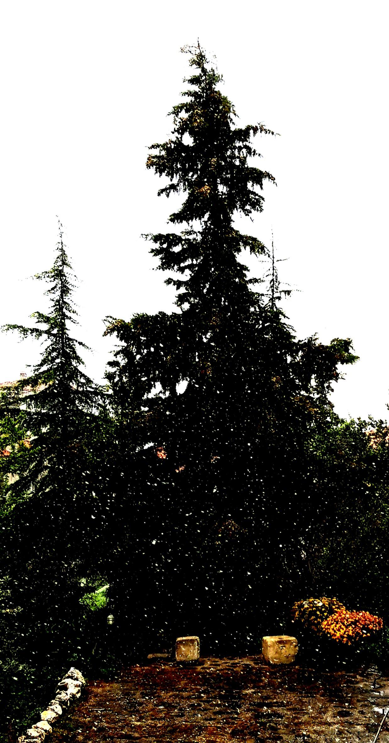 Πολύγυρος. Τούτη την ώρα, Απρίλη μήνα, χιονίζει ακατάπαυστα! Αναρωτιέμαι πράγματι, ..αν σε λίγο θα έχουμε στην αυλή μας… όψιμα χριστουγεννιάτικα δέντρα!