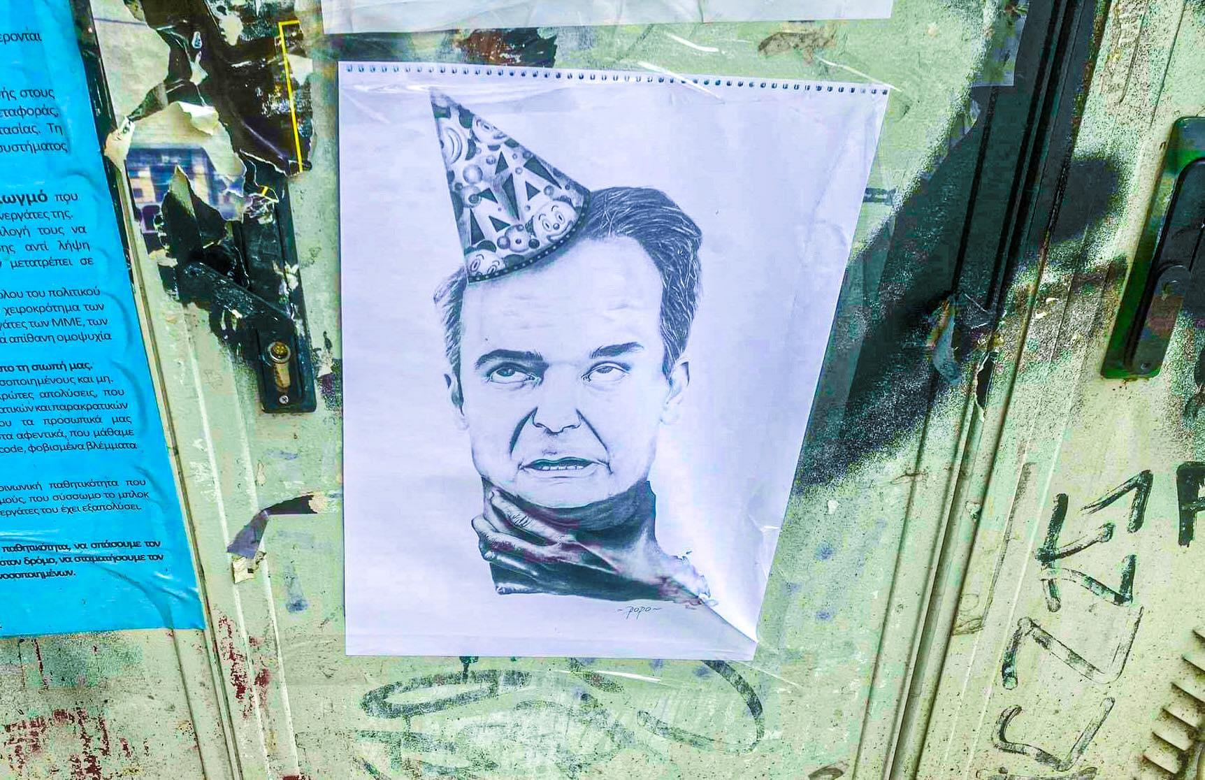 Περπατώντας εχθές στο κέντρο της πόλης, παρατήρησα αυτό το σκίτσο κολλημένο σε διάφορα σημεία της. Μια καρικατούρα με πρωταγωνιστή τον Πρωθυπουργό. Κολλημένη σε καφάο τραβά το βλέμμα. Η Popos Garcia, είναι ένα κορίτσι δυναμικό, προβληματισμένο, μόλις 20 χρονών που σύλλεξε όλες της τις σκέψεις τα τελευταία 2 χρόνια που κυβερνά ο Κυριάκος Μητσοτάκης και τα αποτύπως μοναδικά με ένα μολύβι και σκιάσεις.
