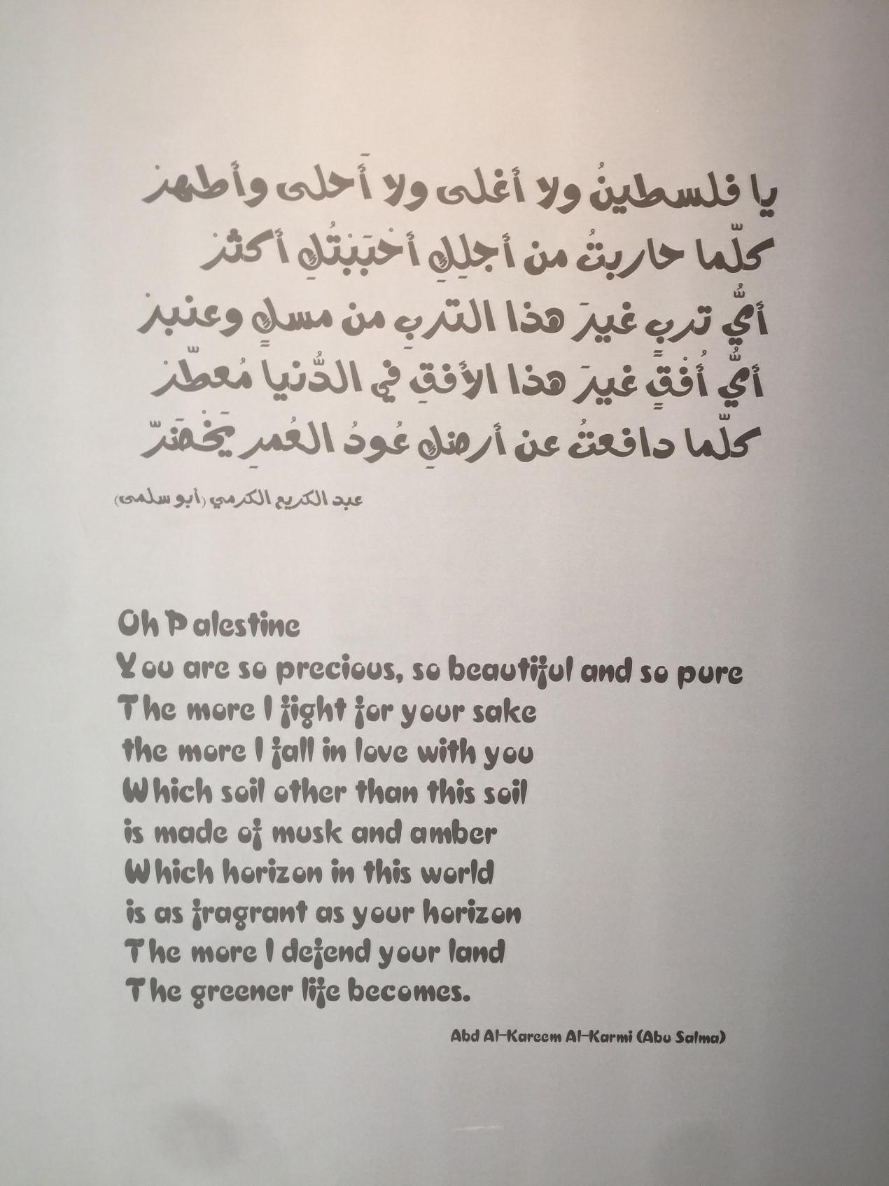 Έτσι θέλω να τη θυμάμαι την Παλαιστίνη, ως μια χώρα που στέκεται αγέρωχη, υψώνοντας με αξιοπρέπεια και περισσή τόλμη το κεφάλι, απαντώντας στο μίσος με χιούμορ και αγάπη.
