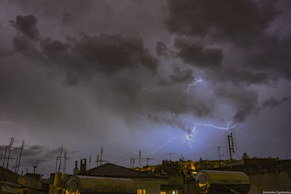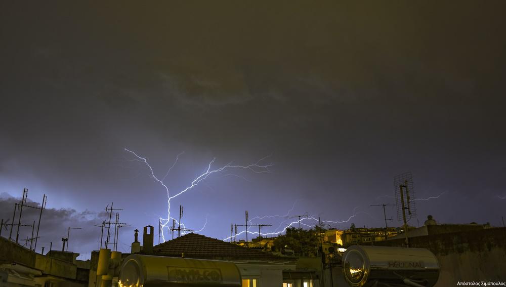 Η χθεσινή καταιγίδα φώτισε τον ουρανό της πόλης με αστραπές.