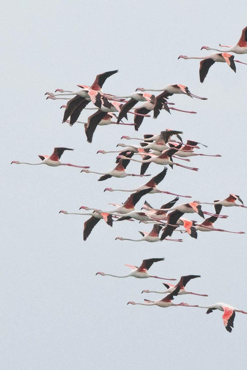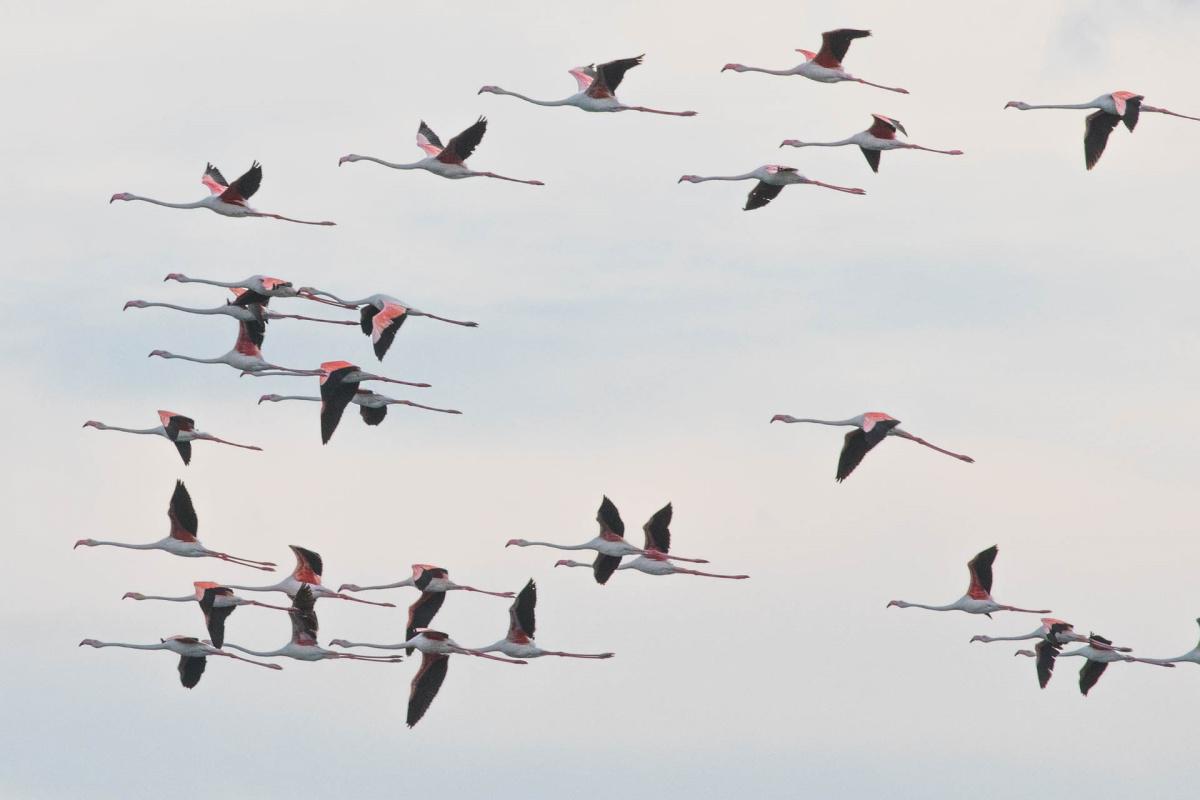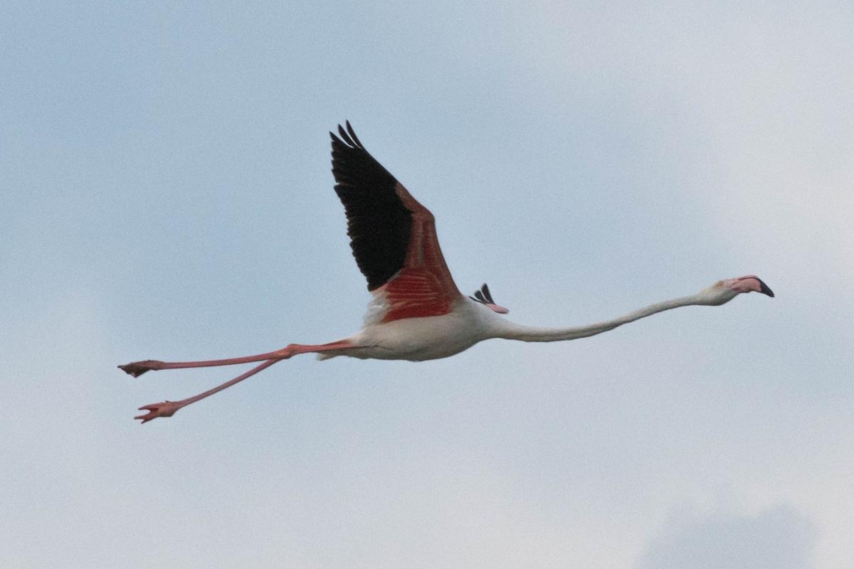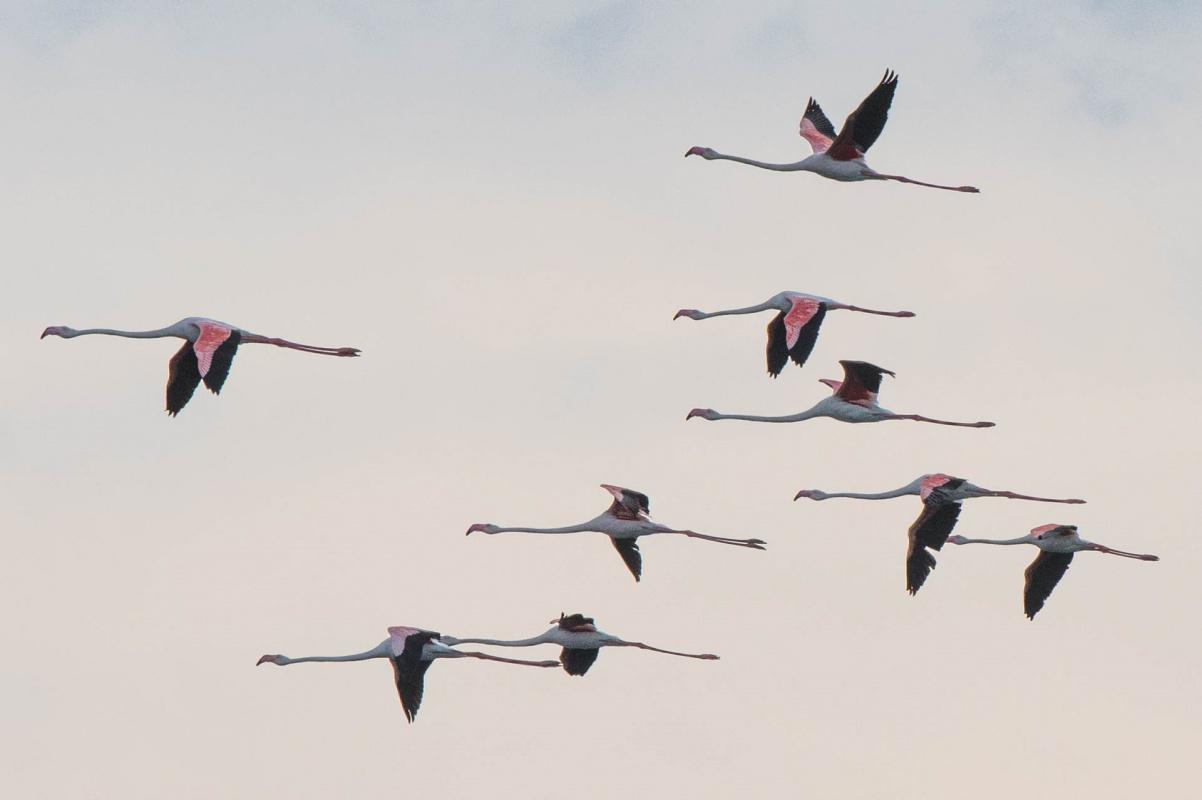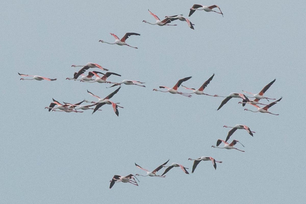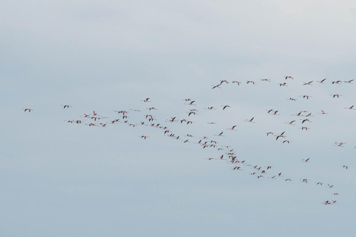 Μετά από τη συνάντηση με το σπάνιο αυτό πτηνό, ο ήλιος άρχισε σιγά σιγά να κατεβαίνει και ένα σμήνος από φλαμίνγκο επέστρεφε στη λιμνοθάλασσα Αγγελοχωρίου από κάποιον άλλο υδροβιότοπο της Θεσσαλονίκης.