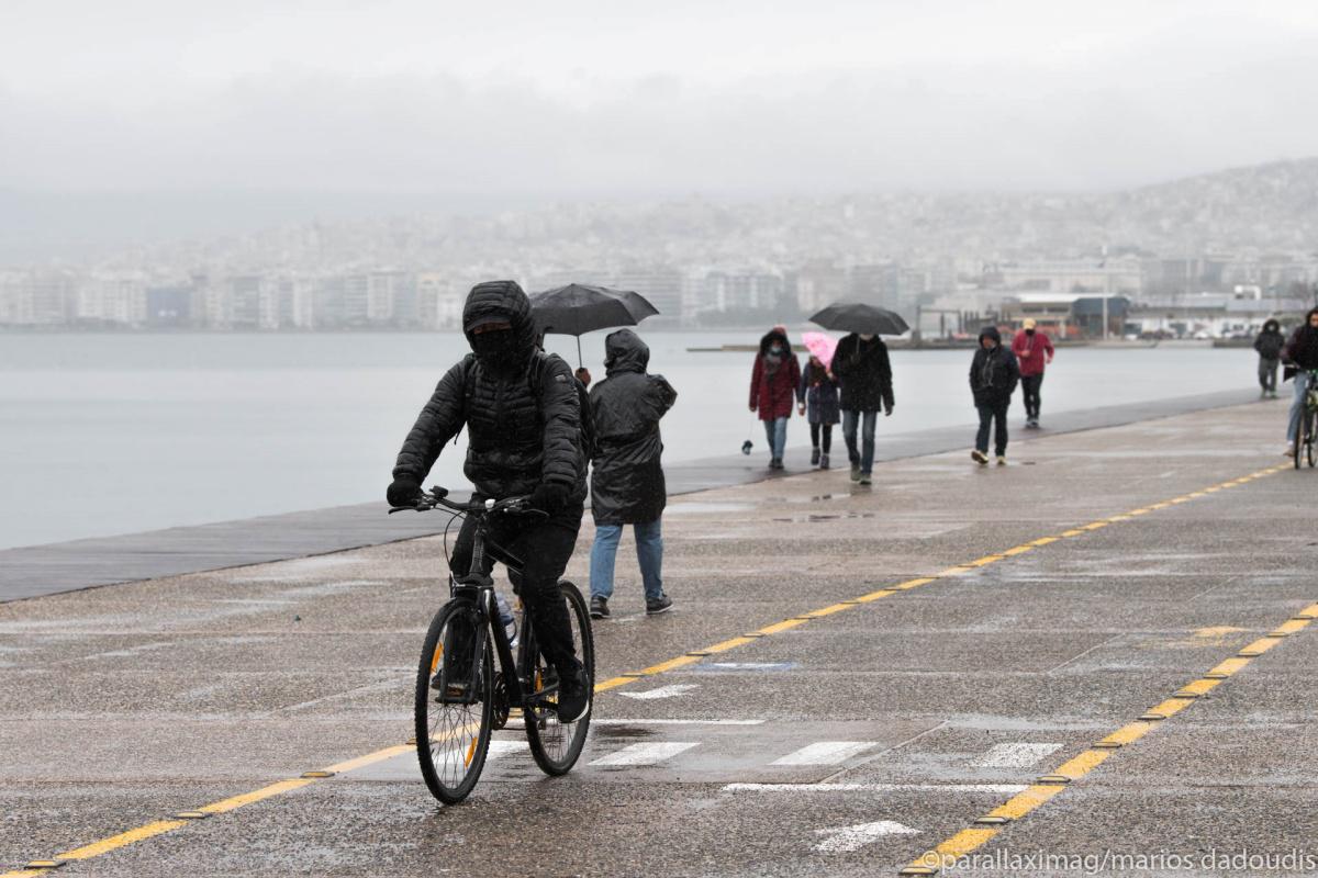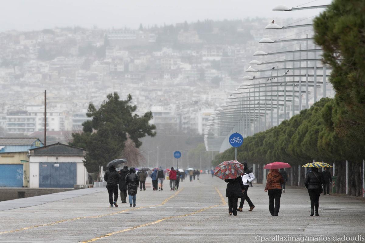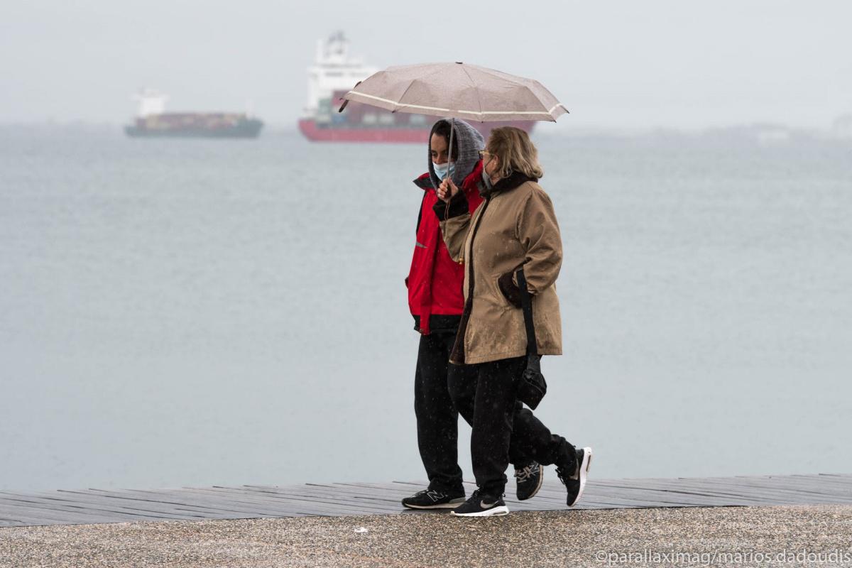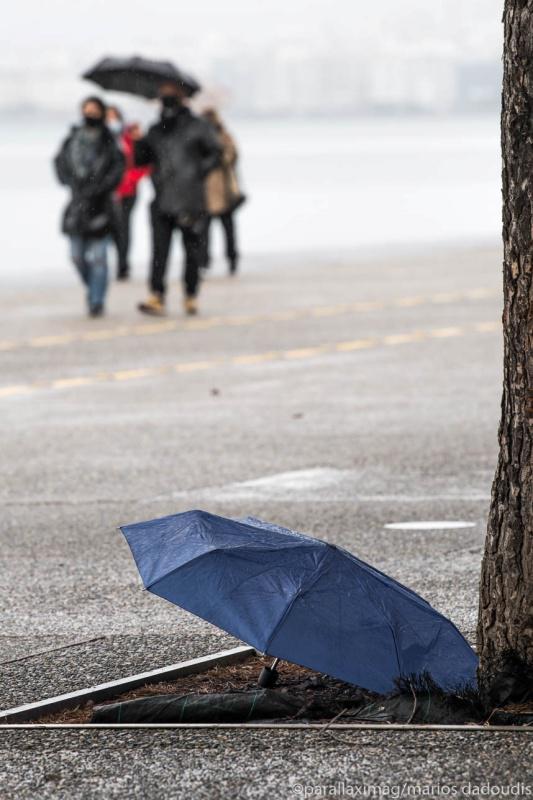 Ο Μάριος Δαδούδης με τον φωτογραφικό του φακό αποτυπώνει την κυριακάτικη βόλτα στην βροχερή νέα παραλία Θεσσαλονίκη: