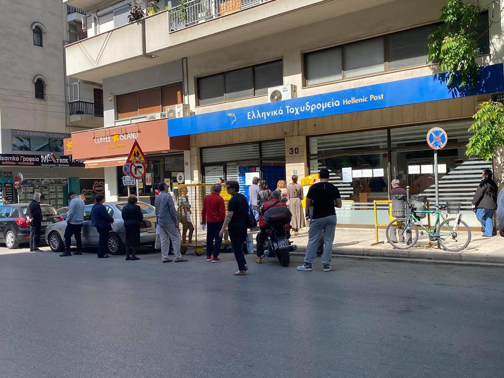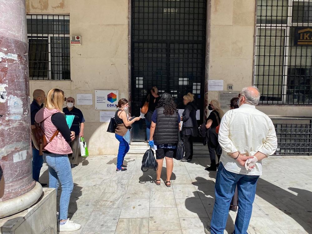 Τόσο στα γραφεία της ΕΥΑΘ στην οδό Αγγελάκη, όσο και στο ΙΚΑ της Αριστοτέλους, αλλά και σε υποκαταστήματα των ΕΛΤΑ και του ΓΕΡΜΑΝΟΥ, πολίτες έχουν συσσωρευτεί εν αναμονή, κάποιοι φορώντας μάσκες προστασίας και κάποια όχι.