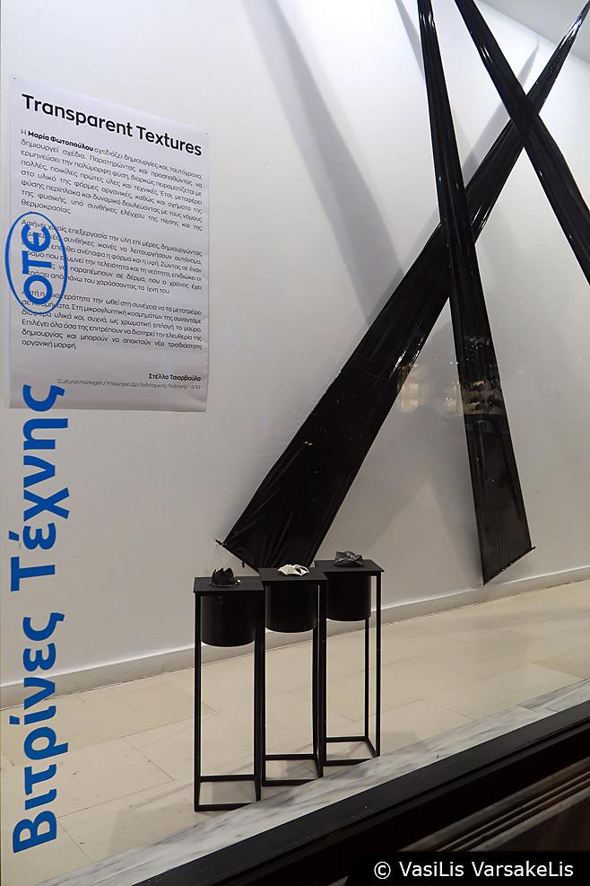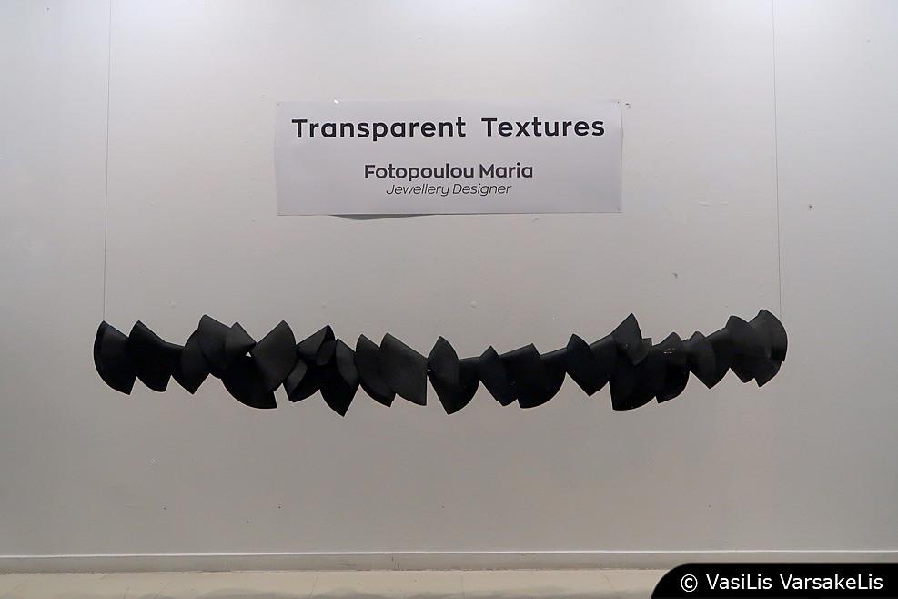 Οι ΒΙΤΡΙΝΕΣ ΤΕΧΝΗΣ του ΟΤΕ φιλοξενούν αυτές τις μέρες την νέα τους προσθήκη, το project Transparent Textures της Μαρίας Φωτοπούλου, η οποία σχεδιάζει δημιουργίες και, ταυτόχρονα, δημιουργεί σχέδια. Παρατηρώντας και προσπαθώντας να ερμηνεύσει την πολύμορφη φύση, διαρκώς πειραματίζεται με πολλές, ποικίλες πρώτες ύλες και τεχνικές. Έτσι, μεταφέρει στο υλικό της φόρμες οργανικές, καθώς και σχήματα της φύσης περίπλοκα και δυναμικά δουλεύοντας με τους νόμους της φυσικής, υπό συνθήκες ελέγχου της πίεσης και της θερμοκρασίας.