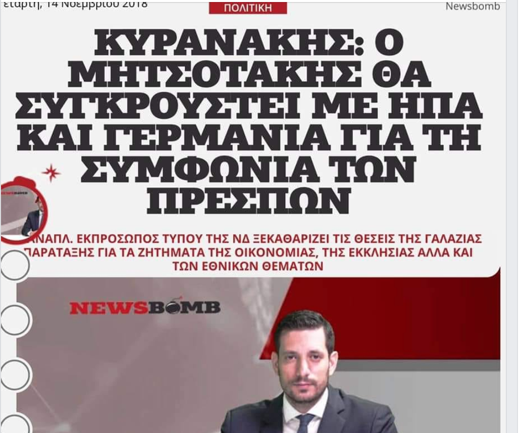 Σήμερα είναι μια ένδοξη μέρα για την εξωτερική πολιτική της Ν.Δ. αλλά κυρίως για όσους ψήφισαν το συγκεκριμένο κόμμα για να τιμωρήσουν το αντίπαλο που υπέγραψε μια προδοτική συμφωνία για τη χώρα και τη Μακεδονία μας.