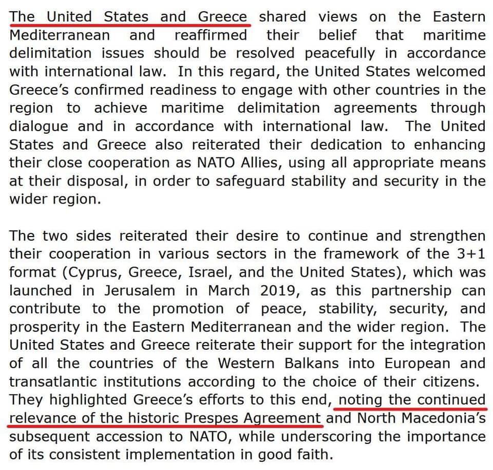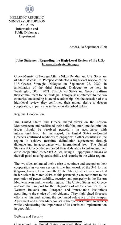 Πριν η φράση εμπεριείχε και τον όρο historic: They highlighted Greece’s efforts to this end, noting the continued relevance of the historic Prespes Agreement and North Macedonia’s subsequent accession to NATO, while underscoring the importance of its consistent implementation in good faith.