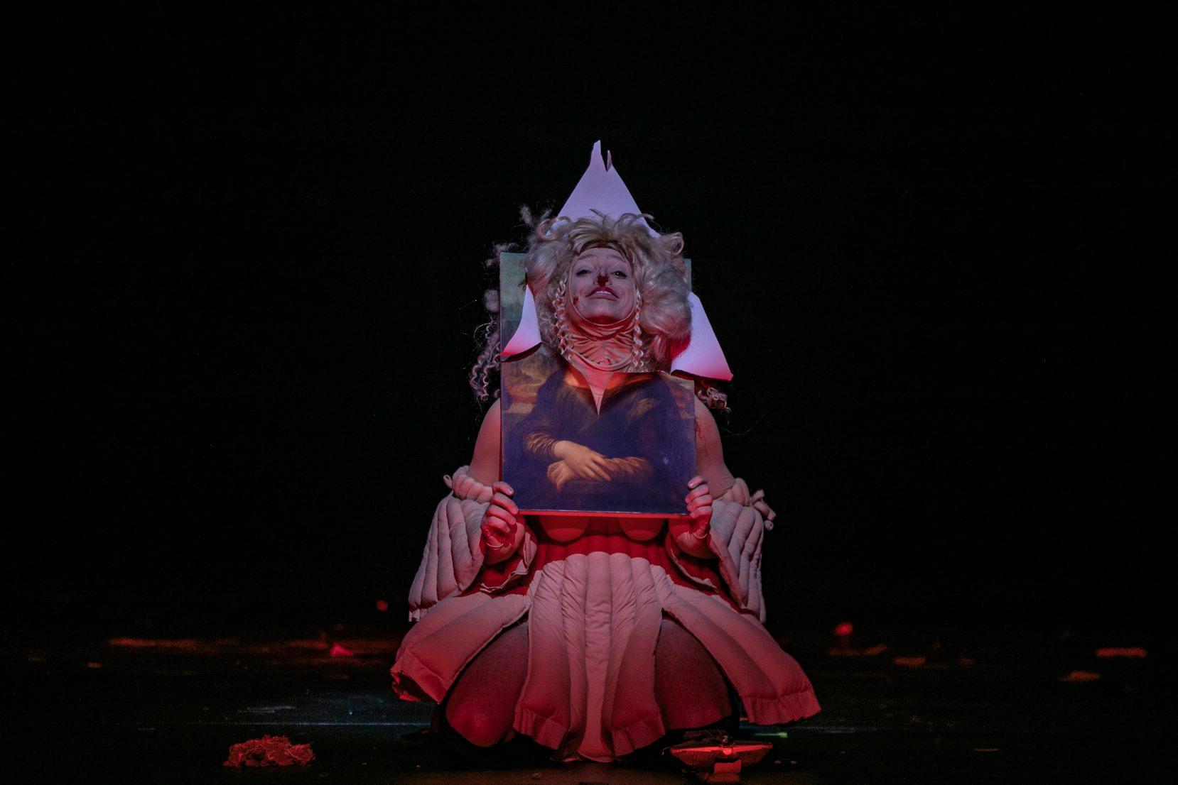 Αλλόκοτα πλάσματα βγαλμένα θαρρείς από ένα παράξενο όνειρο ή ένα θεότρελο παραμύθι καταλαμβάνουν τη σκηνή στο ΕΛΕΝΙΤ. Και εκεί «κωμωδούν παντομιμόμενα», επικοινωνώντας με έναν ακατάληπτο, ασυνάρτητο λόγο που συνοδεύει τα δρώμενα χωρίς να σημαίνει κάτι. Καρικατούρες όπως μια πανύψηλη κυρία των τιμών, μια νεαρή γυναίκα που σέρνει πάντα μαζί της ένα περίεργο σακί, μια υπηρέτρια, ένα δεινόσαυρος- τέρας, φαλακροί άντρες, γυναίκες νάνοι, αλλά και ένας DJ, ο μόνος κανονικός άνθρωπος. Όλοι αυτοί περιφέρονται και αλληλεπιδρούν, όχι οπωσδήποτε τελείως άσκοπα, αλλά σίγουρα όχι και με κάποιον ιδιαίτερο σκοπό.