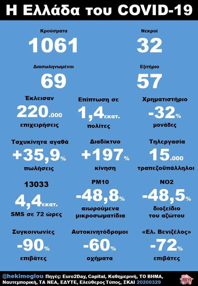 Ένα ιδιαίτερα ενδιαφέρον infographic παρουσιάζει στην προσωπική του σελίδα στο Facebook, o δημοσιογράφος Αχιλλέας Χεκίμογλου σχετικά με τις επιπτώσεις του κοροναϊού στη χώρα μας.