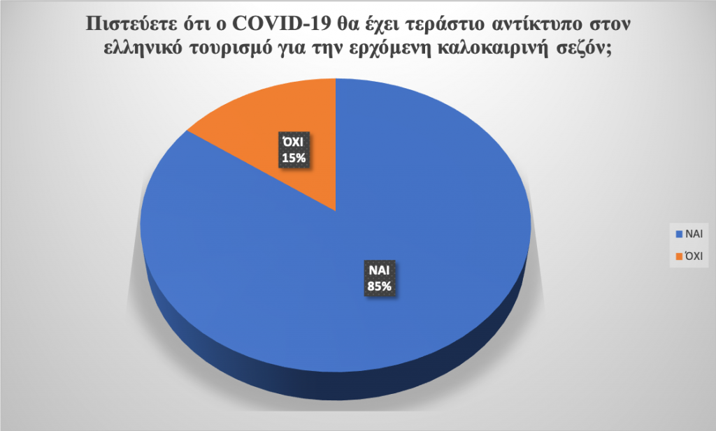 85% του δείγματος των ερωτηθέντων υποστηρίζουν πως ο κορονοϊος θα έχει μεγάλη επίπτωση στον ελληνικό τουρισμό και στην ερχόμενη καλοκαιρινή σεζόν.