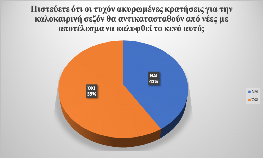 Ενώ μόλις το 41% πιστεύει οτι οι ακυρώσεις που μπορεί να προκύψουν, θα αντικατασταθούν απο νέες κρατήσεις, αρκετές για να καλύψουν αυτό το κενό.