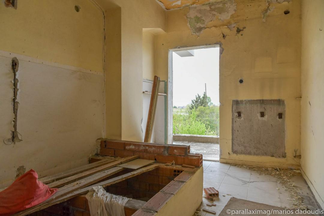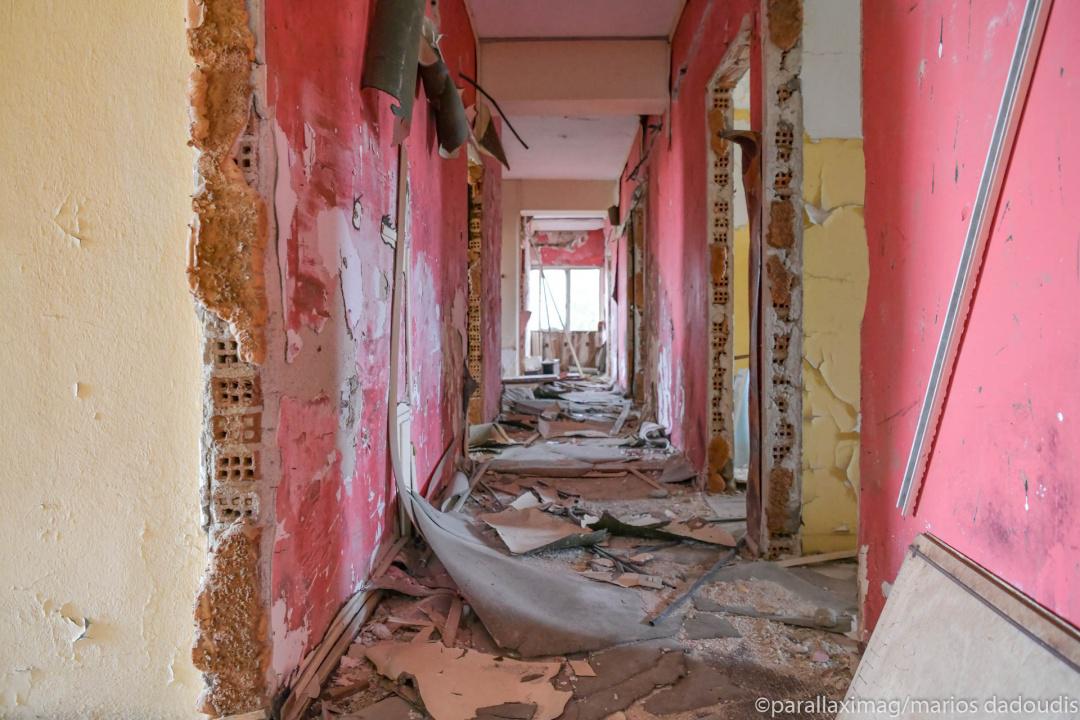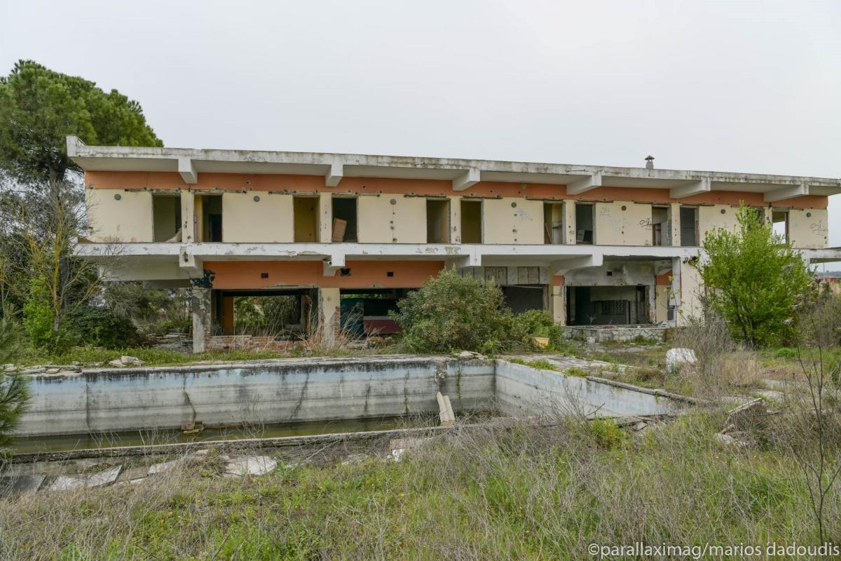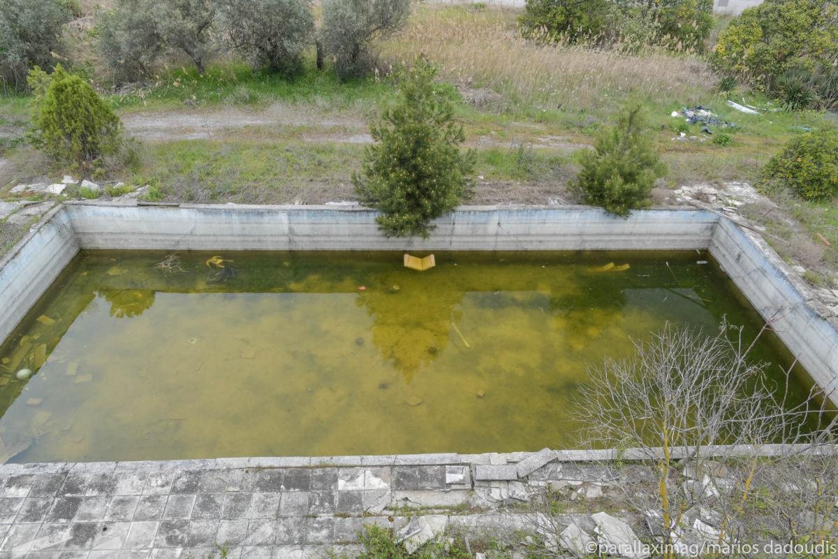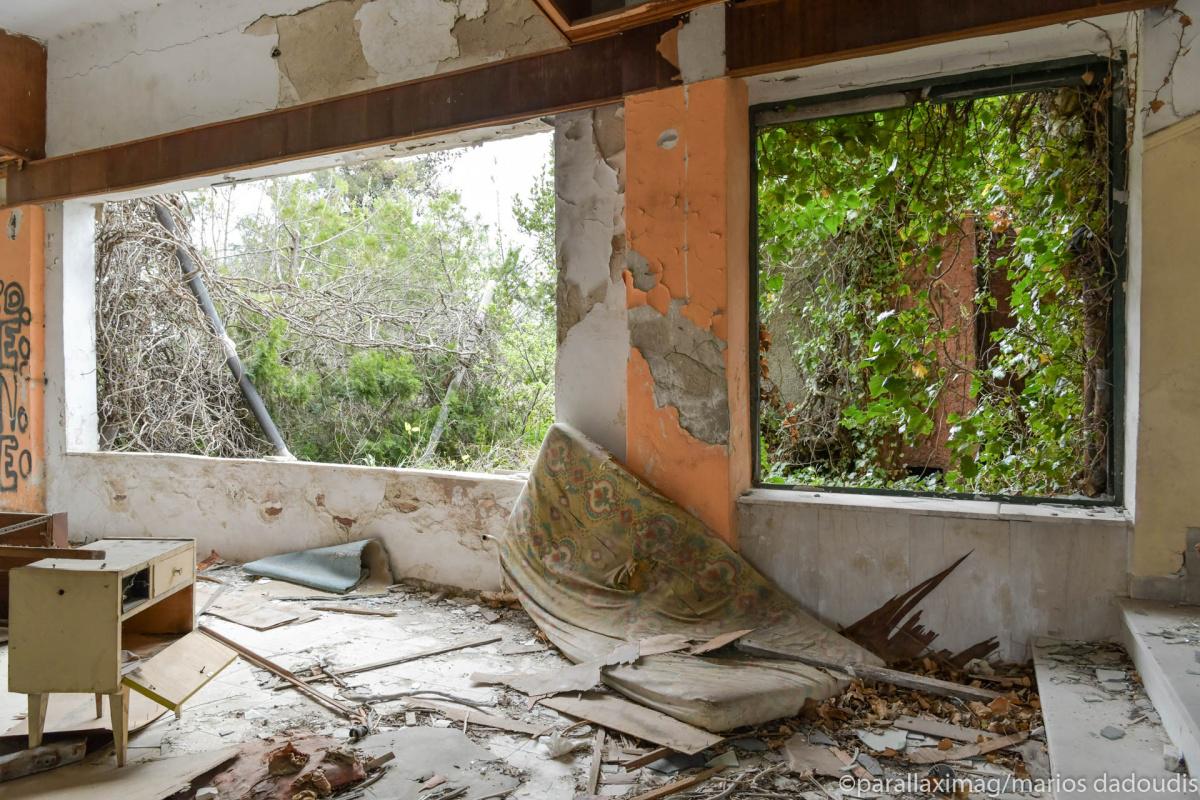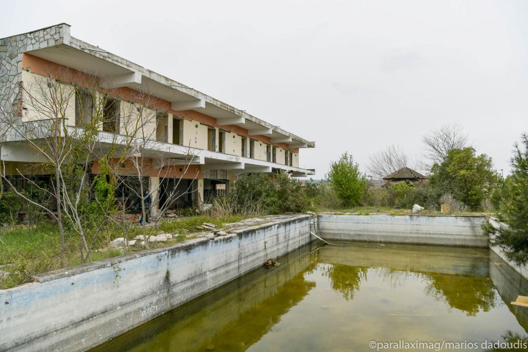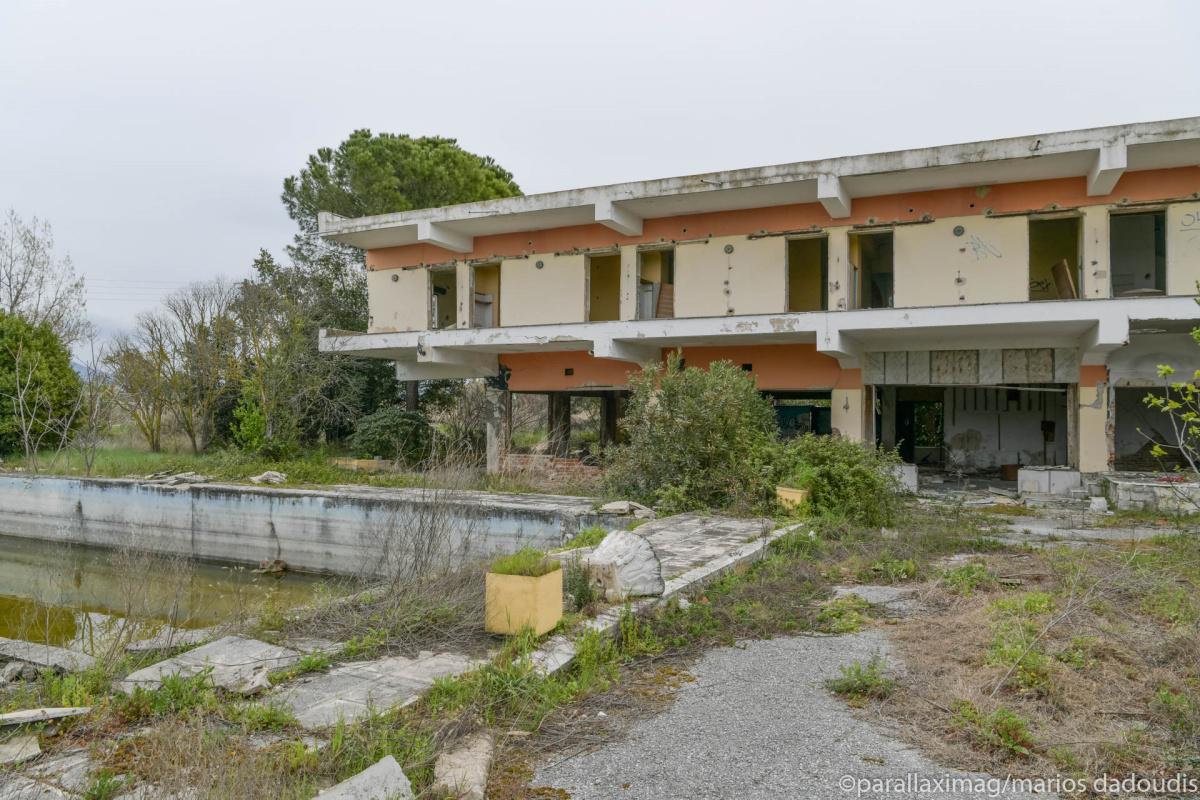 Άδεια δωμάτια, πισίνες που μέσα τους επιπλέουν παλιές πολυθρόνες, έρημα σαλόνια. Παλιά κομοδίνα, κρεβάτια που κοιμήθηκαν ζευγάρια πολλά, τσιμεντένια κουφάρια,
