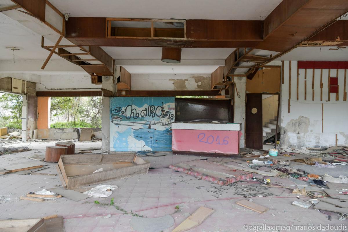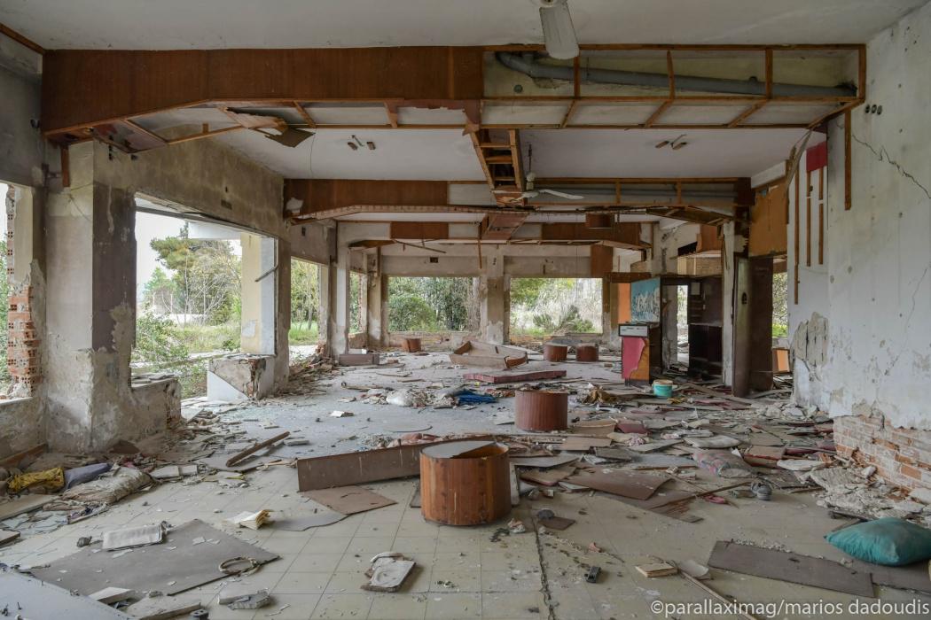 Άδεια δωμάτια, πισίνες που μέσα τους επιπλέουν παλιές πολυθρόνες, έρημα σαλόνια. Παλιά κομοδίνα, κρεβάτια που κοιμήθηκαν ζευγάρια πολλά, τσιμεντένια κουφάρια, προφυλακτικά στα πατώματα, απομεινάρια από μέρες και νύχτες που δεν θα επιστρέψουν ποτέ.