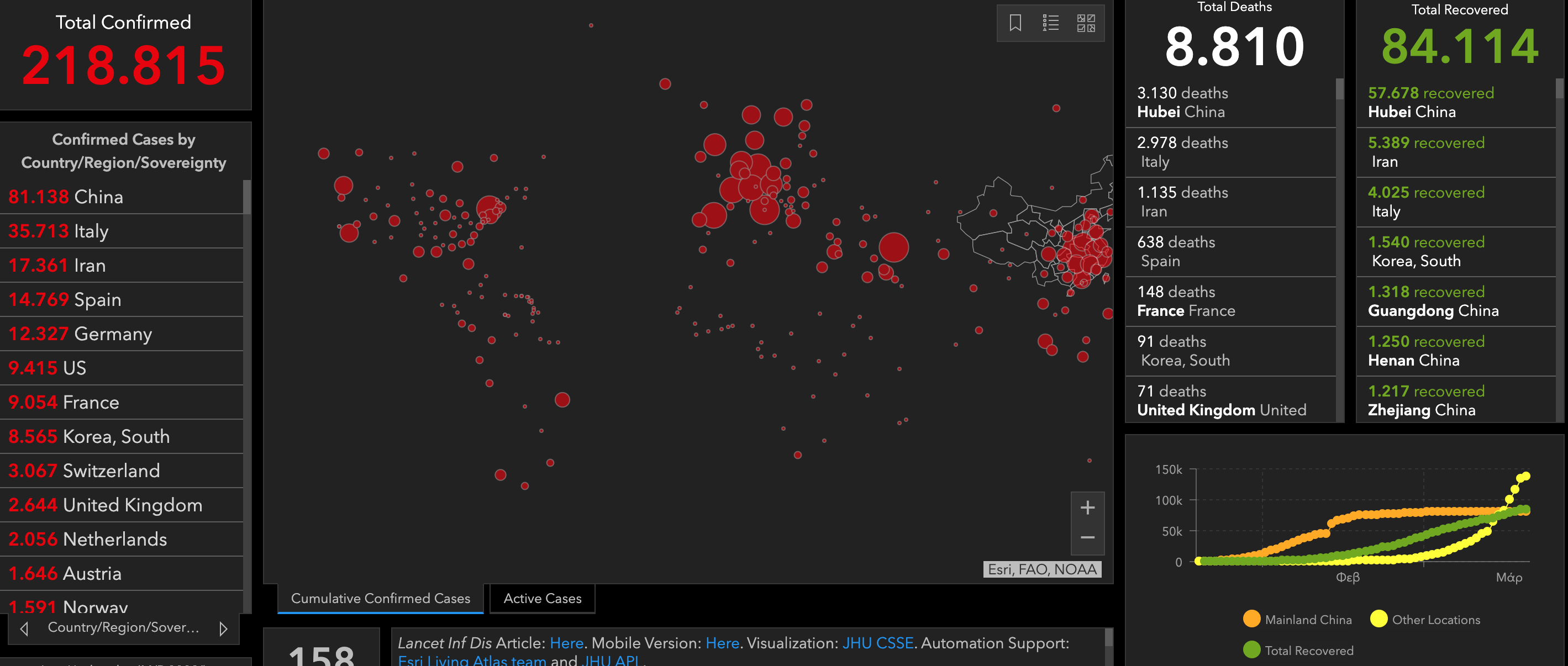 Παράλληλα, ακόμη οκτώ ασθενείς υπέκυψαν, με τον απολογισμό της πανδημίας στην ηπειρωτική Κίνα να αυξάνεται σε 3.245 νεκρούς. Όλοι οι θάνατοι διαπιστώθηκαν στην επαρχία Χουμπέι, οι έξι στη Γουχάν, την πρωτεύουσά της, όπου εμφανίστηκε για πρώτη φορά ο SARS-CoV-2 τον Δεκέμβριο.