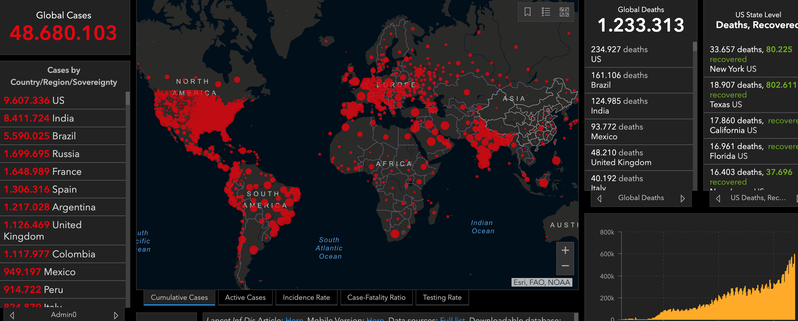 Η εξάπλωση είναι πια έξω και πέρα από κάθε φαντασία. Ακόμα και σε περιοχές που θεωρητικά το έλεγχαν. Αν εξαιρέσεις την Νοτιοανατολική Ασία, την Κίνα και την Ωκεανία που εφαρμόζουν απίστευτα μέτρα ιχνηλάτησης και απομόνωσης, με στρατιωτική πειθαρχία, στον υπόλοιπο πλανήτη ζούμε τον εφιάλτη. Νοσοκομεία έχουν καταρρεύσει, χώρες εξάγουν αρρώστους σε γειτονικές χώρες, άλλες χώρες κρατούν για ώρες τους ασθενείς στα ασθενοφόρα γιατί δεν έχουν που να τους πάνε, η Βρετανία δηλώνει ότι το εμβόλιο της γρίπης που παράγει θα το κρατήσει πρωτίστως για τους δικούς της υπηκόους και αν περισσέψει θα δώσει και αλλού κλπ.