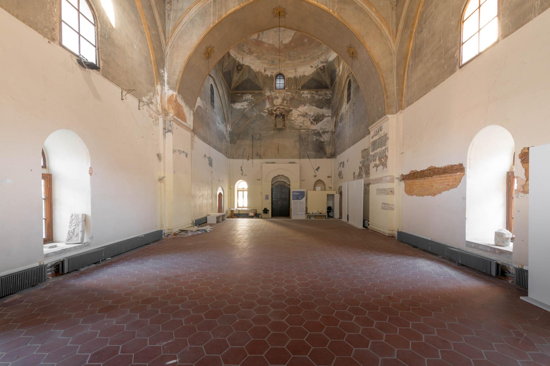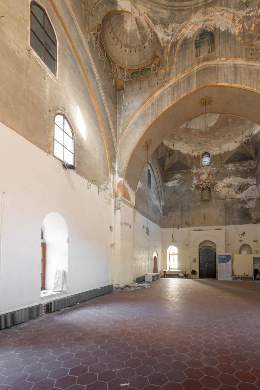Το κτίριο έχει σχήμα ανεστραμμένου Τ με κεντρικό χώρο, δύο μεγάλους θόλους, πλάγια διαμερίσματα στη δυτική πλευρά και κιονοστήρικτη στοά. Ο κεντρικός χώρος του κτιρίου ήταν ο χώρος προσευχής, ενώ στους τέσσερις παράπλευρους γινόταν η διδασκαλία και τα συσσίτια. Εσωτερικά μια μεγάλη καμάρα χωρίζει το χώρο αυτό σε δύο τετράγωνα τμήματα, που το καθένα είναι στεγασμένο με τρούλο. Στο μνημείο υπήρχε πλούσια εσωτερική ανάγλυφη διακόσμηση και ζωγραφική.