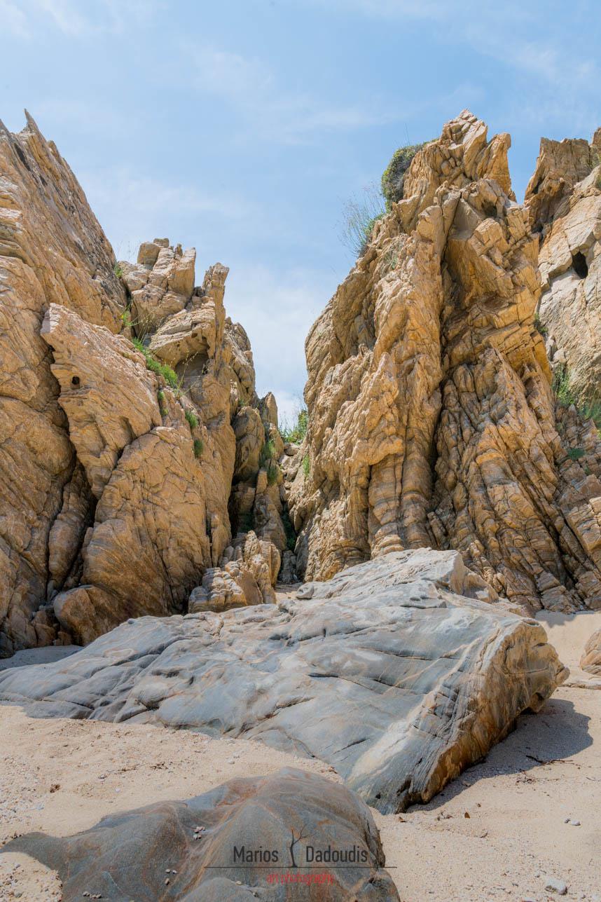 Στην ουσία, αποτελείται από τρεις παραλίες, που χωρίζονται μεταξύ τους από πανύψηλα κάθετα βράχια τα οποία ρίχνουν τη σκιά τους στη θάλασσα δημιουργώντας ένα πολύτιμο καταφύγιο από τις καλοκαιρινές καυτές ακτίνες του ήλιου την ώρα που προσφέρονται και για εντυπωσιακές βουτιές για τους πιο τολμηρούς.
