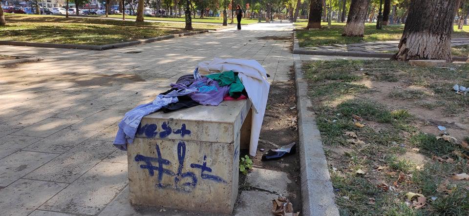 Τα πεζοδρόμια είναι σπασμένα, ενώ όσα από τα ελάχιστα παγκάκια που υπάρχουν στην πλατεία, είτε είναι εγκαταλελειμμένα στη βρωμιά, είτε έχουν καταληφθεί από αστέγους.
