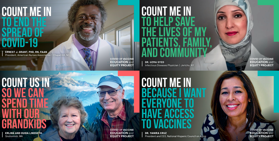 Σε λίγες περιπτώσεις επιστρατεύτηκαν πρόσωπα υγειονομικών. Οι καμπάνιες αυτές δυστυχώς σε πολλές χώρες όπως τη δική μας δεν απέδωσαν. Δεν έπεισαν τους δύσπιστους οι οποίοι τις αγνόησαν επιδεικτικά.