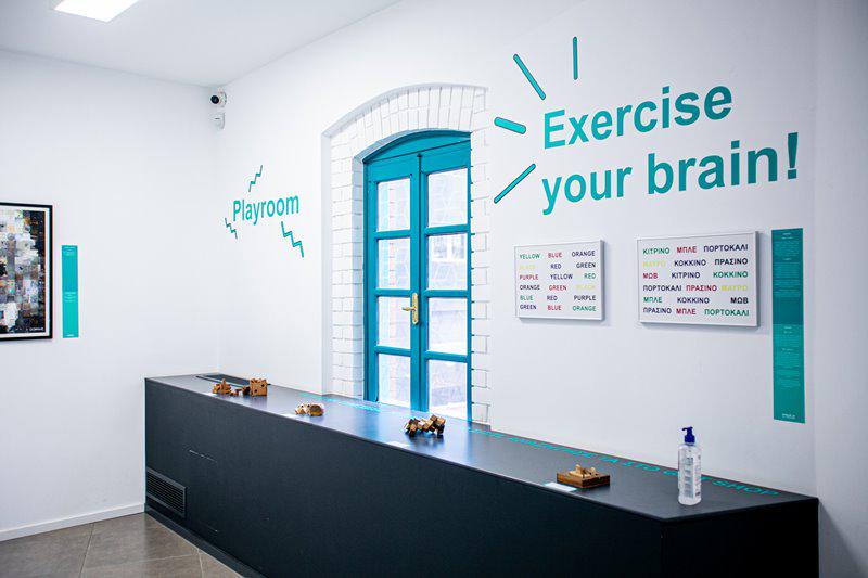 Ο χώρος λευκός με γαλάζια στοιχεία, ανακαινισμένο κλασικό παλιό βιοτεχνικό κτίριο στα ιστορικά Λαδάδικα που μέσα του ξεπηδούν η φαντασία, η δημιουργία, το απόλυτο παιχνίδι του μυαλού.