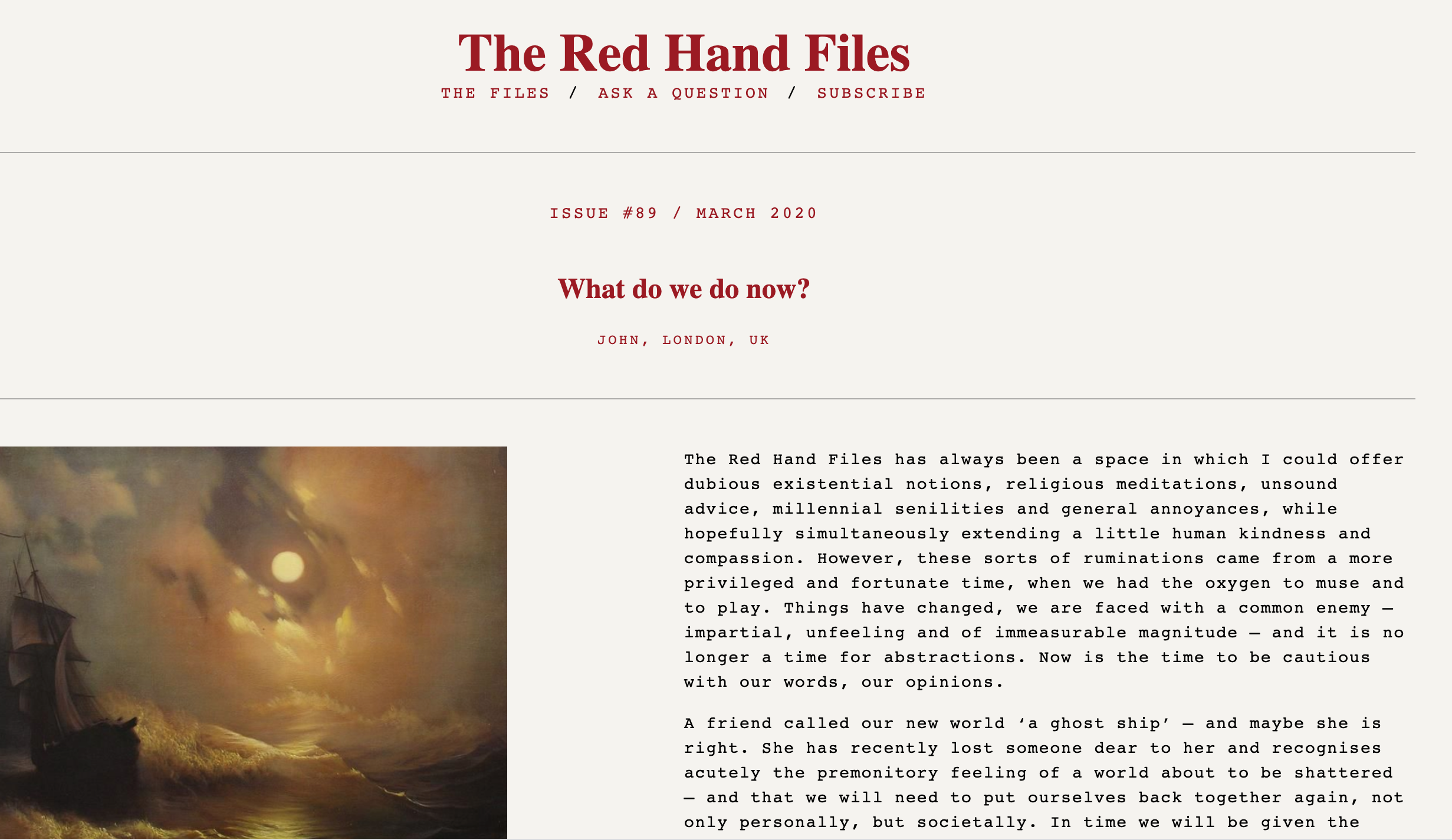 Μερικές σκέψεις του Νικ Κέιβ στον ιστότοπο σκέψεις The Red Hand Files για όσα ζούμε: