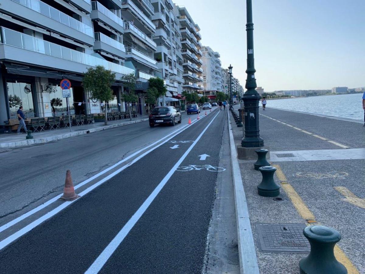 Φωτογραφίσαμε το έργο του ποδηλατόδρομου στην Λεωφόρο Νίκης από την χθεσινή νύχτα μέχρι και σήμερα το πρωί και όπως φαίνεται οι ποδηλάτες ήδη κάνουν χρήση της νέας λωρίδας. Ιδιαίτερα σήμερα το πρωί, αρκετοί ήταν οι Θεσσαλονικείς που πήραν το ποδήλατο τους και πέρασαν από την παραλία.