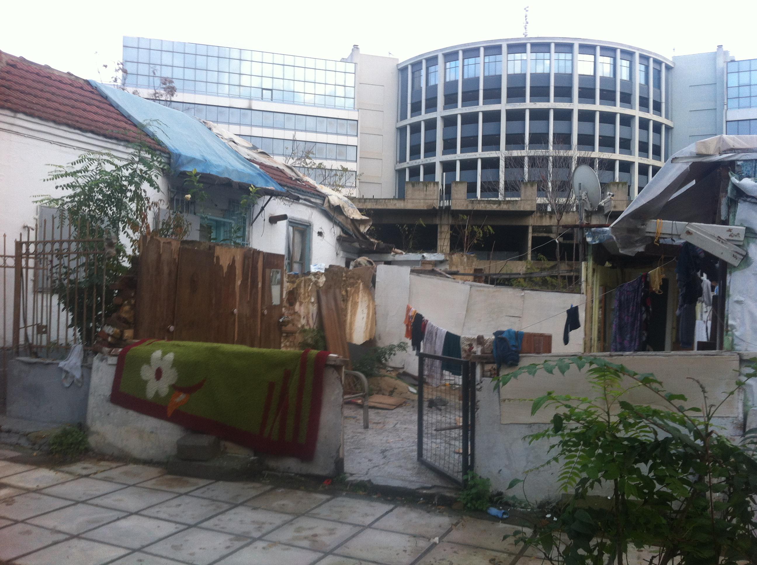 Σπίτια αποθήκες και τεράστιες πολυκατοικίες που δεν ολοκληρώθηκαν ποτέ δίπλα σε μισογκρεμισμένα συνεργεία, χαμόσπιτα και χαμηλά μπουρδέλα. Στην Σαπφούς οι τσιγγανοπούλες πατούσαν με τα πόδια τους τις φλοκάτες μέσα σε λεκάνες με μπόλικη σαπουνάδα τραγουδώντας αμανέδες και τσιφτετέλια.