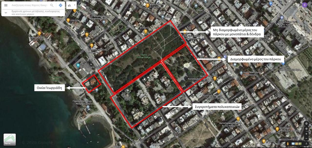Η μεγάλη αυτή περιοχή (κτήματα της οικογενείας) γύρω από το εγκαταλελειμμένο σπίτι φέρει το όνομα τους καθώς πέρασε στην ιδιοκτησία του δήμου και έγινε ένας μεγάλος χώρος αναψυχής και πρασίνου. Κτήμα γεμάτο με φιστικιές και τσικουδιές. Μετά από συμφωνία με τον δήμο Καλαμαριάς ένα μέρος κτίστηκε και έγιναν πολυκατοικίες πολυτελείας και το υπόλοιπο μετατράπηκε σε πάρκο το γνωστό πάρκο Ούλαφ Πάλμε.