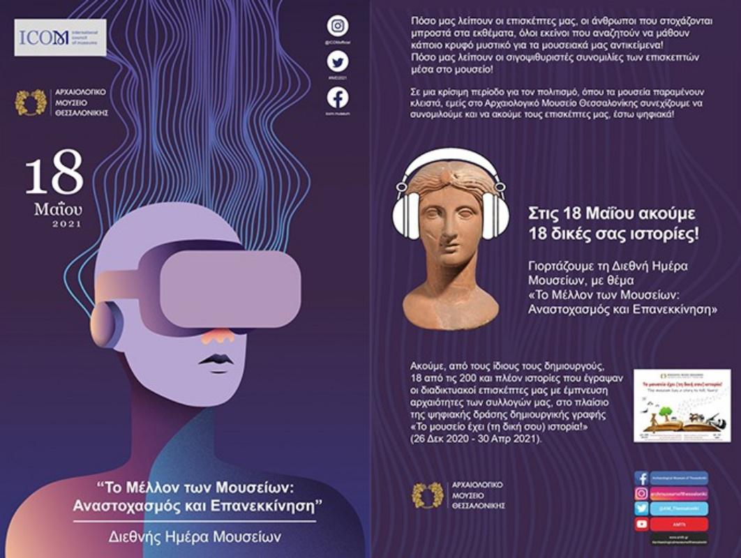 Σε μια κρίσιμη περίοδο για τον πολιτισμό, όπου τα μουσεία παραμένουν κλειστά, εμείς στο Αρχαιολογικό Μουσείο Θεσσαλονίκης συνεχίζουμε να συνομιλούμε και να ακούμε τους επισκέπτες μας, έστω ψηφιακά! Στις 18 Μαΐου ακούμε 18 δικές σας ιστορίες!