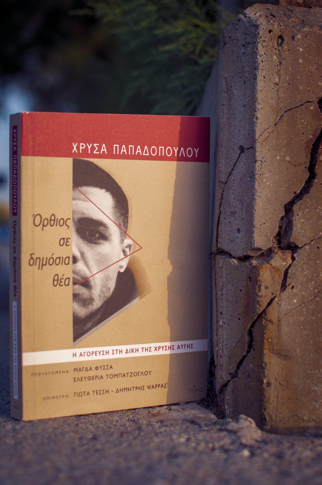 Πέρυσι τον Νοέμβριο επέλεξα να αγοράσω μαζί τα βιβλία της Χρύσας Παπαδοπούλου και του Κώστα Παπαδάκη σχετικά με την πολύκροτη δίκη της Χρυσής Αυγής. Το “Όρθιος σε δημόσια θέα” (επίμετρο Δημήτρης Ψαρράς, Γιώτα Τέσση) κυκλοφορεί από τις Εκδόσεις Πόλις κι αποκτά ιστορική αξία. Ένας ύμνος στην υπέρβαση.