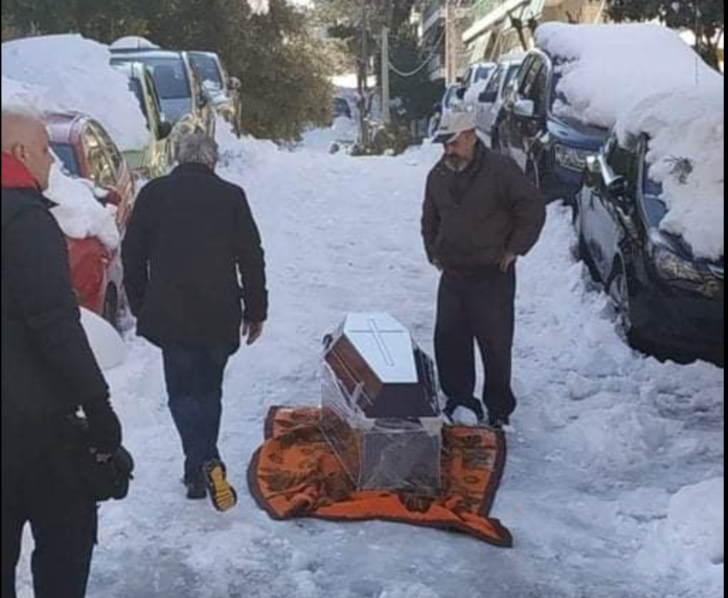 Μια εικόνα κάνει το γύρο των social. Σε μια μέρα με άλλους 115 νεκρούς από την πανδημία κάποιοι άνθρωποι στου Ζωγράφου σέρνουν κυριολεκτικά στο χιόνι ένα φέρετρο. Το χιόνι είναι δεν είναι είκοσι πόντους εκεί πάνω. Η εικόνα δεν είναι στο Κοσσυφοπέδιο, ούτε στις γειτονιές των Τσιγγάνων της Ρουμανίας το περιστατικό. Είναι σε μια αστική γειτονιά μιας ιστορικής πρωτεύουσας.