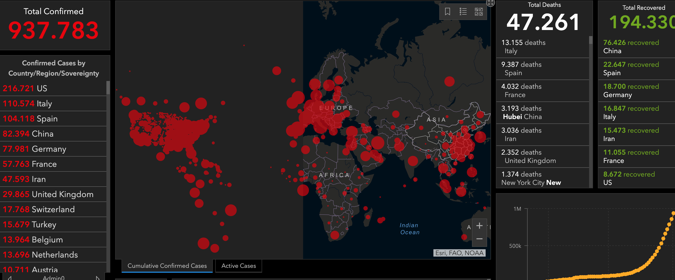 Πάνω από 900.000 κρούσματα μόλυνσης από τον κορονοϊό καταγράφονται παγκοσμίως, εκ των οποίων 215.000 στις ΗΠΑ, όπου η ασθένεια COVID-19 εξαπλώνεται πλέον ταχύτερα απ’ ό,τι οπουδήποτε αλλού. Ελλείψει επαρκών δυνατοτήτων για την πραγματοποίηση εξετάσεων, οι αριθμοί αυτοί πιθανόν είναι πολύ κατώτεροι από την πραγματικότητα.