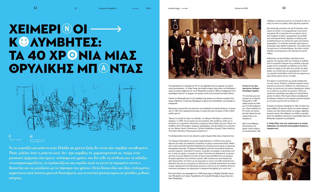 Η Parallaxi Αυγούστου είναι εδώ με ένα τεύχος που αφιερώνεται σε ένα συγκρότημα που άφησε ιστορία και έναν καλοκαιρινό μύθο της Χαλκιδικής. Γιορτάζει τα 40 Χρόνια της θρυλικής μπάντας των Χειμερινών Κολυμβητών, ανατρέχει στην ιστορία του υπέροχου οικισμού των καθηγητών στην Βουρβουρού, και φυσικά σου κάνει 10 κορυφαίες προτάσεις εξόδου για να «σβήσεις» το καλοκαίρι σου στη Θεσσαλονίκη. Καλή ανάγνωση!