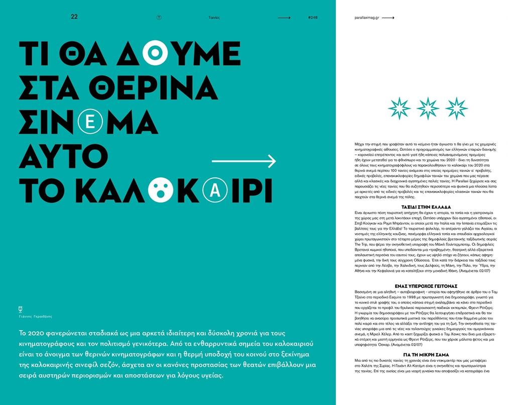 Η Parallaxi Ιουλίου είναι εδώ με ένα τεύχος για το διαφορετικό αστικό καλοκαίρι που θα ζήσουμε όλοι μας εν μέσω της συνεχιζόμενης πανδημίας. Από επιλογές events εντός και εκτός Θεσσαλονίκης, μέχρι την ιστορία της γέννησης του τουρισμού στην Χαλκιδική, από μια ενδιαφέρουσα συνέντευξη μέχρι την ανάλυση της άλλης επιδημίας του αιώνα, και από προτάσεις για τα θερινά σινεμά και τις αναγνώσεις μας, μέχρι τον πλήρη οδηγό γεύσης, σε έχουμε καλύψει για το θέρος. Καλή ανάγνωση!