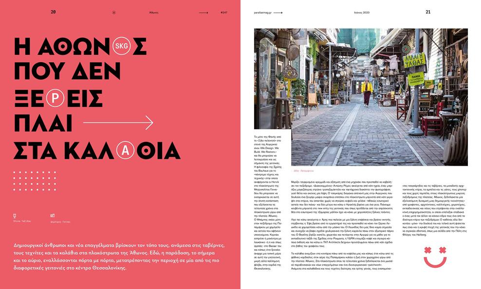 Δημιουργικοί άνθρωποι και νέα επαγγέλματα βρίσκουν τον τόπο τους, ανάμεσα στις ταβέρνες, τους τεχνίτες και τα καλάθια στα πλακόστρωτα της Άθωνος. Εδώ, η παράδοση, το σήμερα και το αύριο, εναλλάσσονται πόρτα με πόρτα, μετατρέποντας την περιοχή σε μία από τις πιο διαφορετικές γειτονιές στο κέντρο Θεσσαλονίκης.