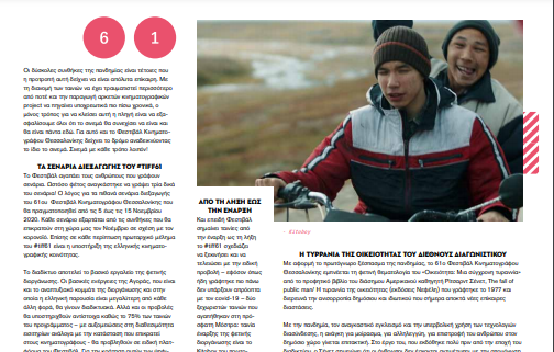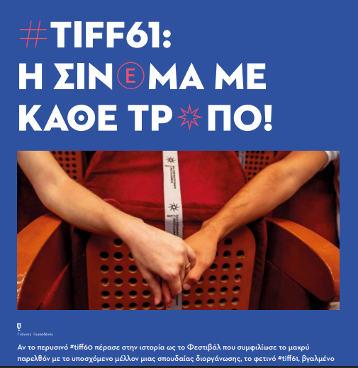 Αν το περυσινό #tiff60 πέρασε στην ιστορία ως το Φεστιβάλ που συμφιλίωσε το μακρύ παρελθόν με το υποσχόμενο μέλλον μιας σπουδαίας διοργάνωσης, το φετινό #tiff61, βγαλμένο μέσα από ένα lockdown και ένα απόλυτα weird αλλά δίσεκτο έτος, έχει ένα δυναμικό και ξεκάθαρο σκοπό: Σινεμά με κάθε τρόπο!