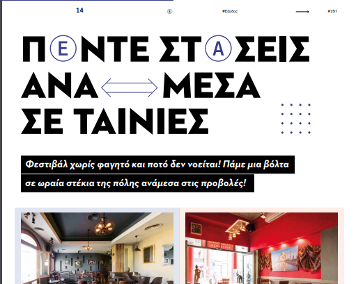 Φεστιβάλ χωρίς φαγητό και ποτό δεν νοείται! Πάμε μια βόλτα σε ωραία στέκια της πόλης ανάμεσα στις προβολές!